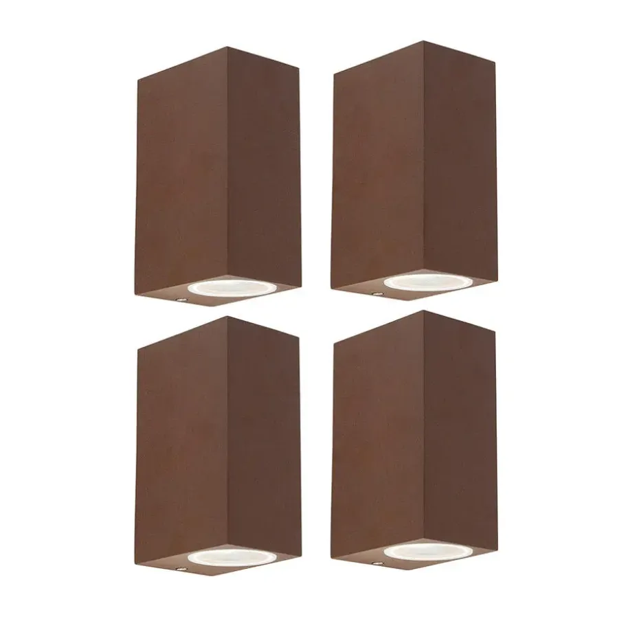 Wat een stoere wandlamp is Baleno I. Zijn roestbruine kleur zorgt voor een industriële touch aan je interieur. De wandlamp is gemaakt van aluminium en komt in een set van 4! Hij heeft een diepte van 9 cm, hoogte van 15 cm en lengte van 6,5 cm. Het leuke van Baleno I is dat de lamp zowel boven als beneden licht geeft. Je maakt de wandlamp compleet met acht GU10 lichtbronnen van max. 35 Watt. Zorg dat je deze er nog los bij besteld. De wandlampen zijn dimbaar met een externe dimmer, deze is niet inbegrepen. Met zijn IP44 waarde is Baleno I spatwaterdicht. Perfect voor naast de voordeur of in de badkamer. Maak jouw industriële interieur compleet met wandlamp Baleno I.