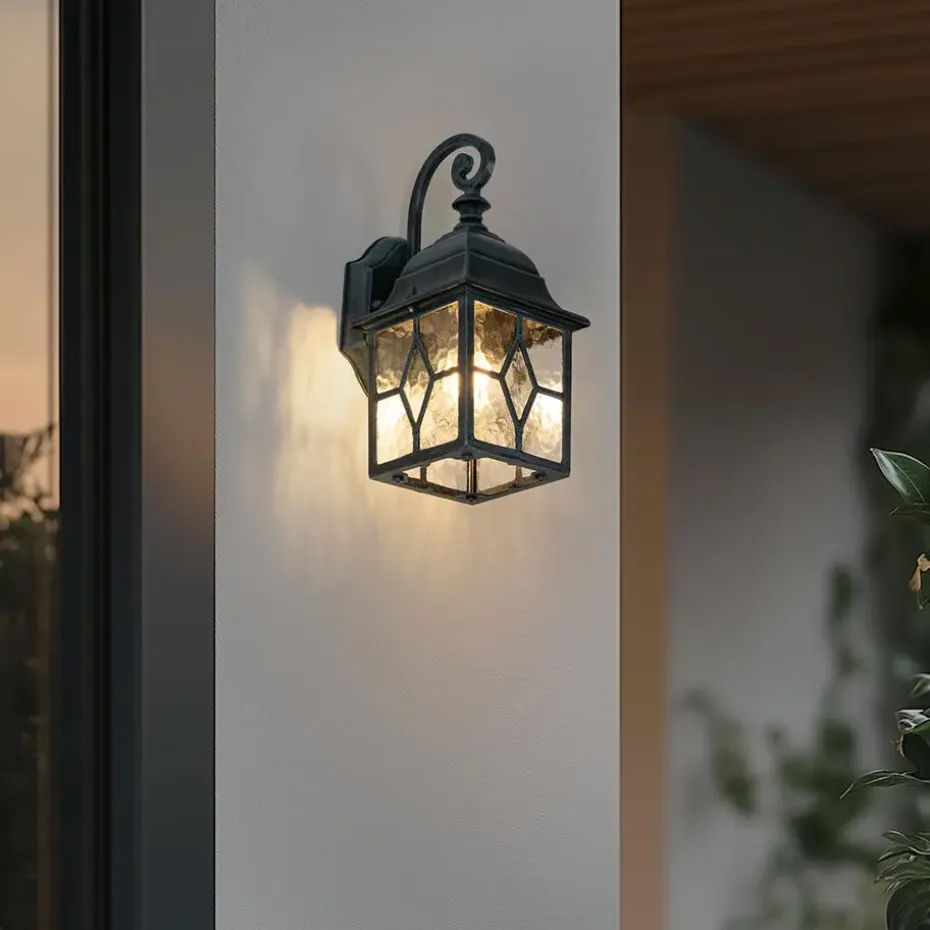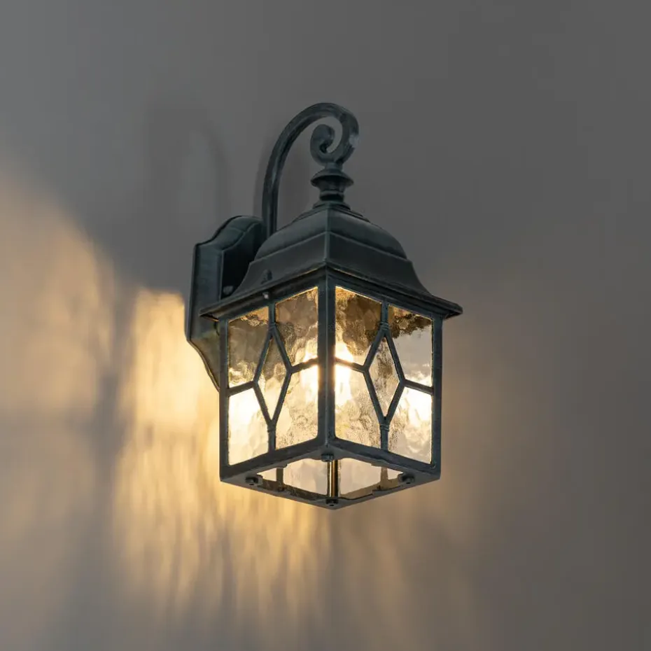 Buiten wandlamp London past perfect naast de voordeur, het tuinhuis of op het terras. De aluminium met glazen buitenlamp is afgewerkt in een groene kleur. Hij heeft een diepte van 17,8 cm, een hoogte van 31,8 cm en een lengte van 15,1 cm. Het montageplaatje heeft een diepte van 2,5 cm, hoogte van 16 cm en lengte van 10,8 cm. Door zijn IP23 waarde is hij regenwaterdicht en geschikt voor beschutte plekken zoals tegen het huis. Ga voor een mooie E27 fitting lichtbron van max. 60 watt, omdat deze goed zichtbaar is (niet inbegrepen). Zorg voor een fijne sfeer in jouw tuin met London.