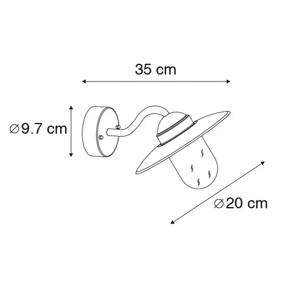 De wandlamp Munich is mooi afgewerkt met metaal en glas. Kenmerkend door de landelijke stijl in een gave zink kwaliteit. Hij heeft een lengte van 20 cm, een hoogte van 25 cm en een diepte van 35 cm. De montageplaat voor aan de muur heeft een diameter van 9,7 cm.