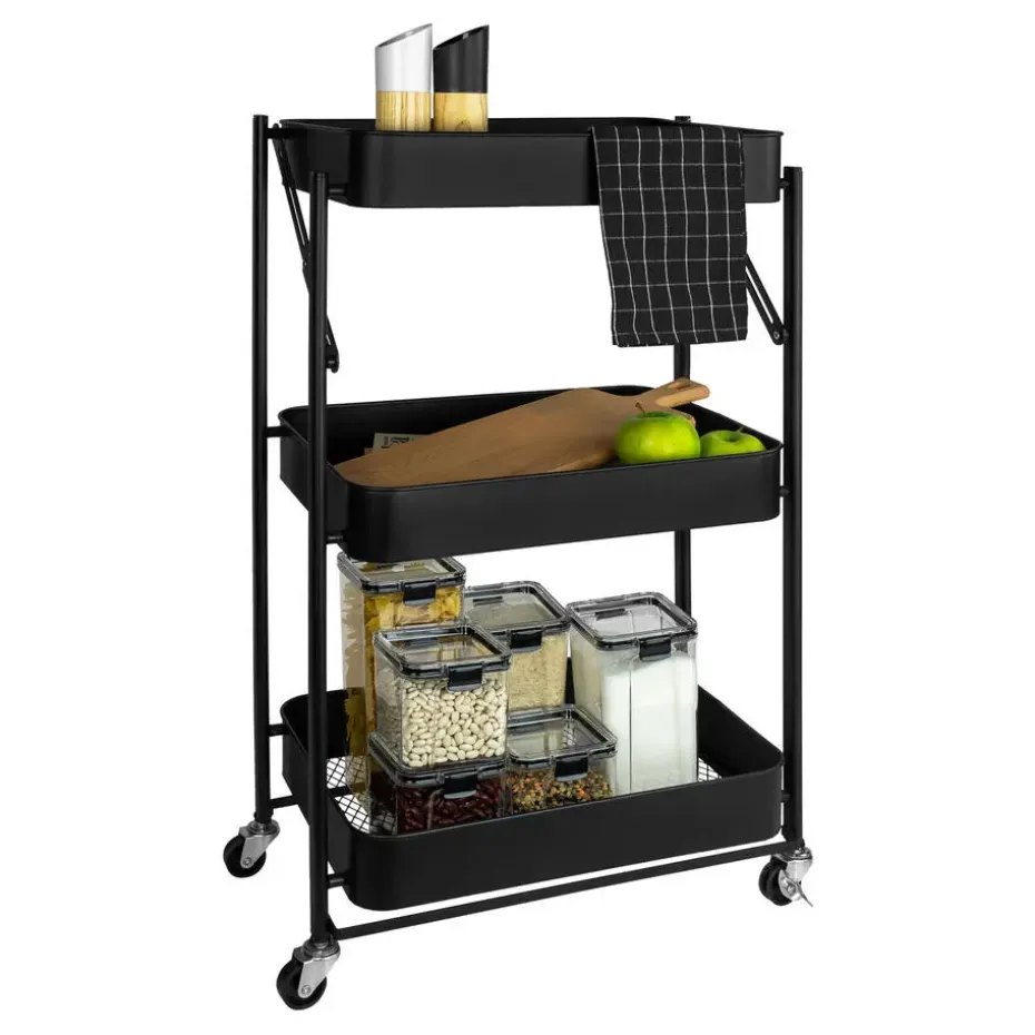 Aangezien dit ontwerp in het beste is, kun je de trolley gebruiken wanneer dat jou het beste klapbaar is. Dankzij de zwarte kleur is het model erg tijdloos en past perfect in elke stijl keuken. Dus of je nu een moderne witte keuken hebt van een landelijke keuken in het blauw of in het groen, deze keukentrolley is in alle gevallen de perfecte aanwinst.