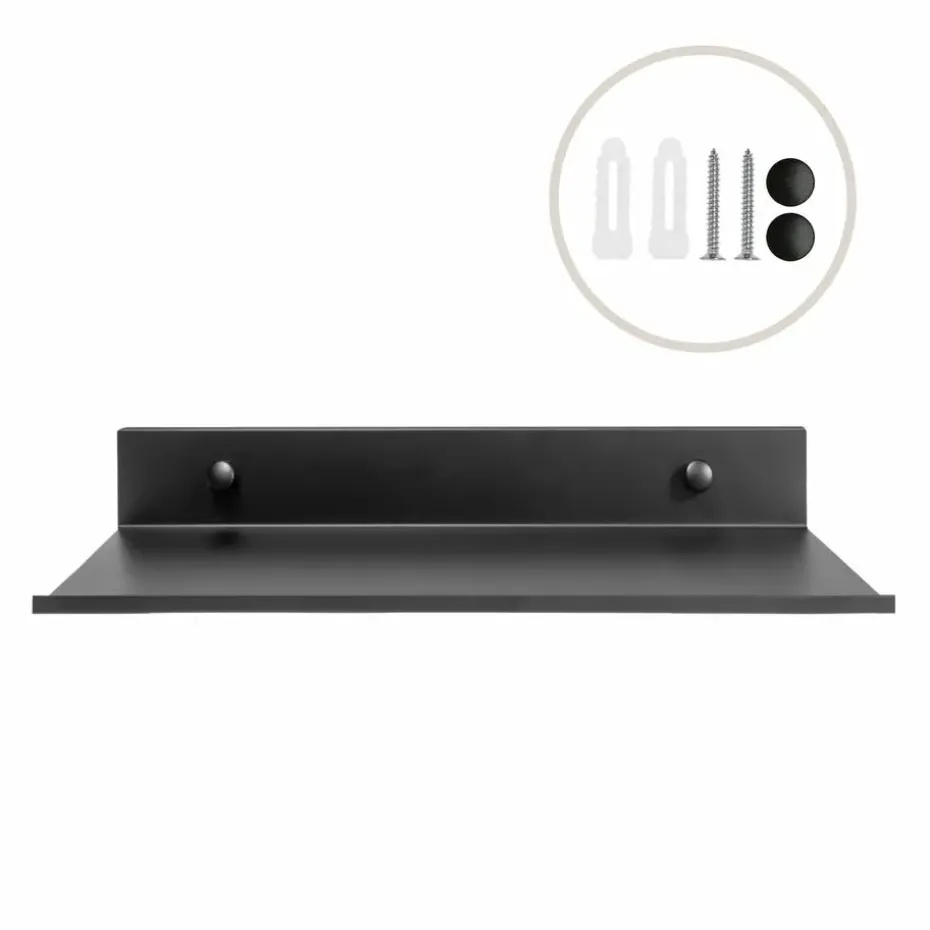 Deze QUVIO Wandplank van staal is een erg handige plank om zoals gezegd spullen die je wilt uitlichten of spullen die je wilt opbergen op te plaatsen. De opbergplank is volledig zwart van kleur. Dit zorgt er voor dat de plank op vrijwel iedere muur wel een mooie uitstraling geeft,omdat zwart simpelweg geen veel of storende kleur is voor het oog. De plank is daarnaast volledig van staal. Dit leidt ertoe dat de plank zeer sterk is en niet zomaar omvalt of bijvoorbeeld buigt. Zware prijzen kunnen er dus zonder problemen op worden geplaatst. Deze opbergplank heeft een breedte van zeker 30 centimeter. De afstand vanaf het uiteinde tot aan de muur is zo’n 12 centimeter en het stukje wat aan de muur wordt bevestigd is in hoogte 4 centimeter.