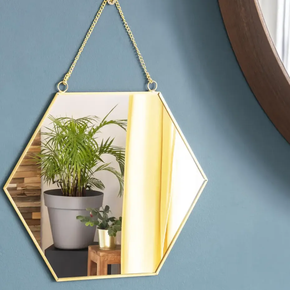 Deze zeshoeken spiegel van QUVIO zorgt voor een zeer elegante uitstraling. Het kan dienen als decoratie in diverse ruimtes. Denk hierbij bijvoorbeeld aan de hal,zodat men bij binnenkomst meteen iets te zien krijgt met een mooie uitstraling,of bijvoorbeeld in de woonkamer als muurdecoratie. Ook kan de spiegel worden gebruikt als decoratie in de kinderkamer. De spiegel kan overal net dat ene iets te lege stuk muur opvullen op een erg mooie wijze. Het artikel is zeshoek van vorm wat ook meespeelt in de elegante uitstraling.