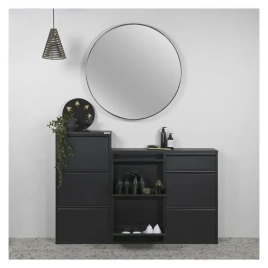 Combineer het zwart van de kast met zwarte accessoires en zwarte verlichting. Maak je contrasten tussen zwart en wit of laat je het zwart tegen een donkere achtergrond uitkomen? Het kan allemaal! Met deze kast zit je altijd goed, welke stijl je ook aan je woning geeft. Ze zal nog jarenlang je gang of hal stijlvol aankleden.