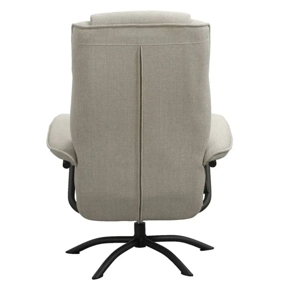 Relaxfauteuil Vincent in de kleur zand is een relaxfauteuil met een moderne look. De bekleding is gemaakt van 100% polyester en dat betekent dat deze stof onderhoudsvriendelijk en slijtvast is. Het onderstel is gemaakt van mat metaal en is draaibaar. Deze stoel zit heerlijk en is een echte eyecatcher in je interieur. De rugleuning van de stoel is d.m.v. een hendel naar achteren te verstellen.