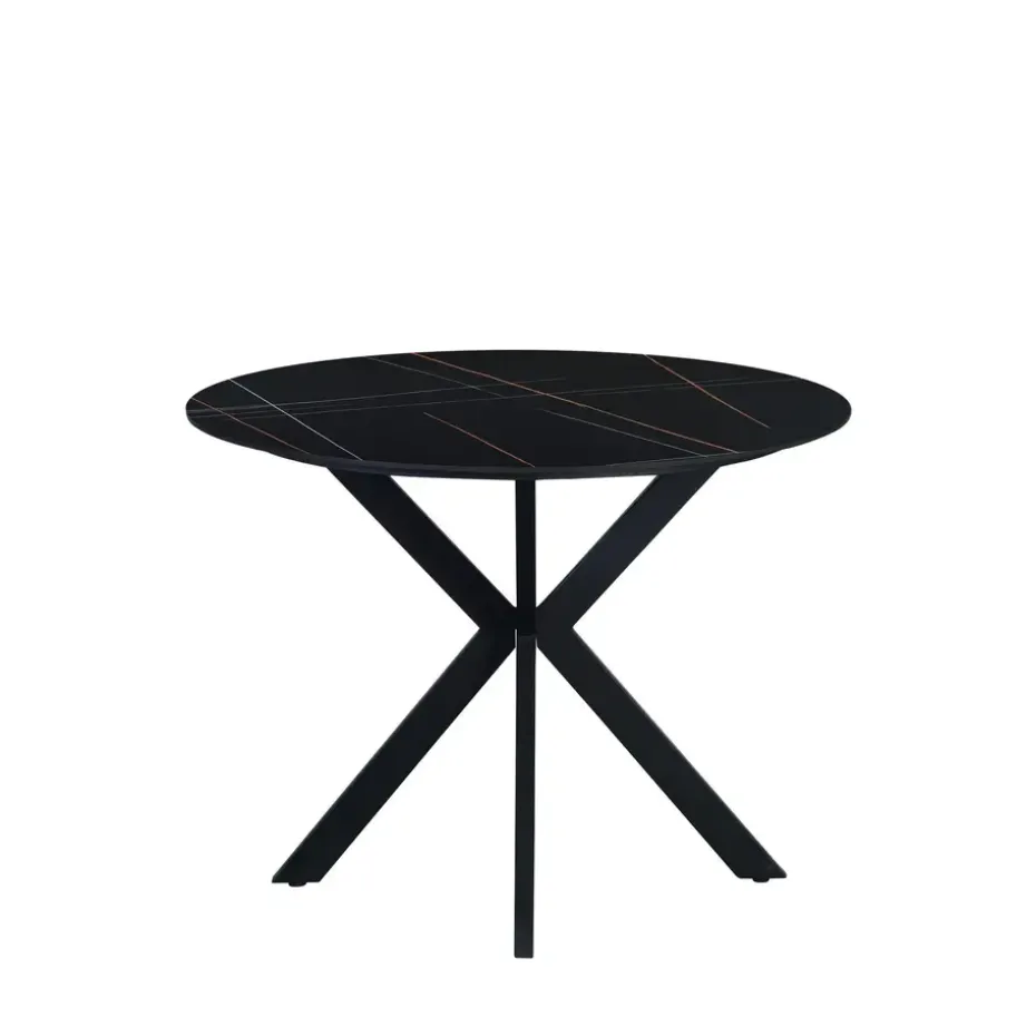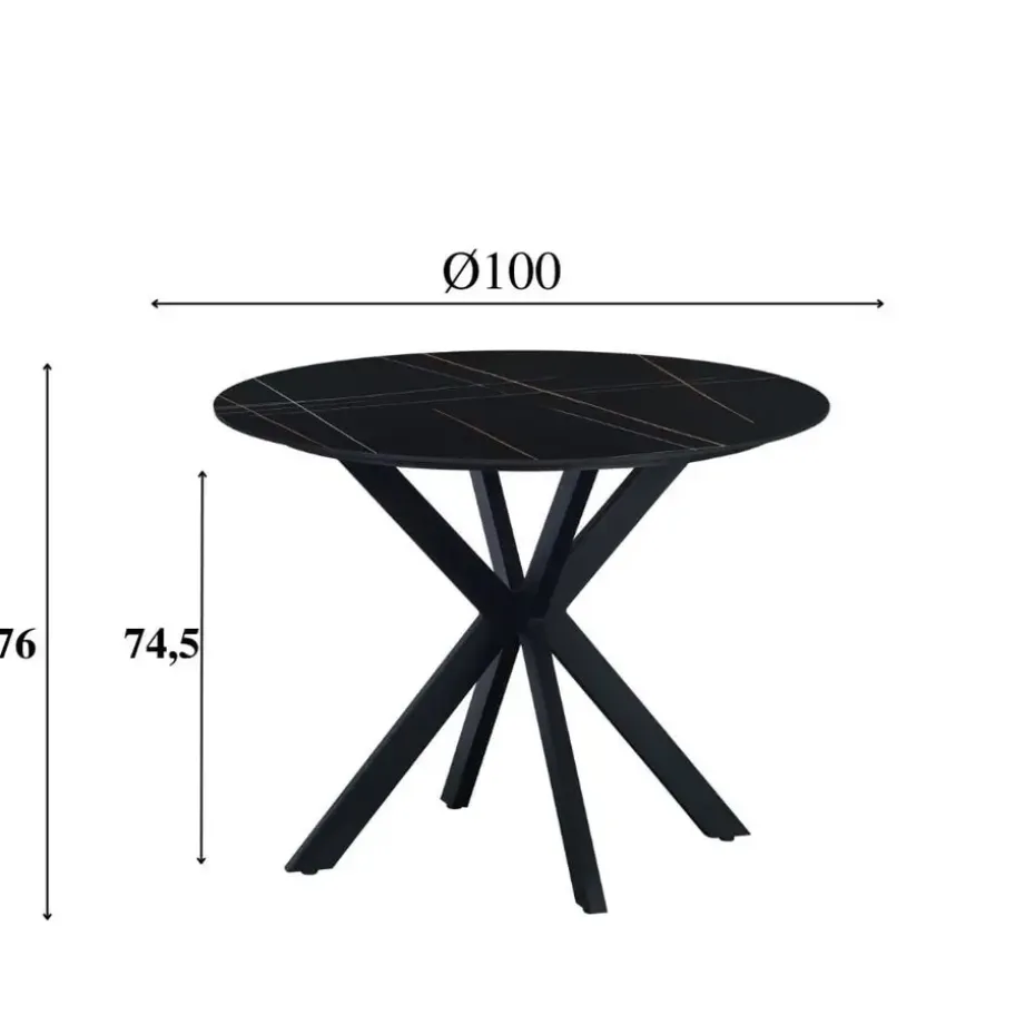 De spinpoot van eettafel Yuna is gemaakt van zwart gepoedercoat metaal. De tafel is gemakkelijk te monteren.