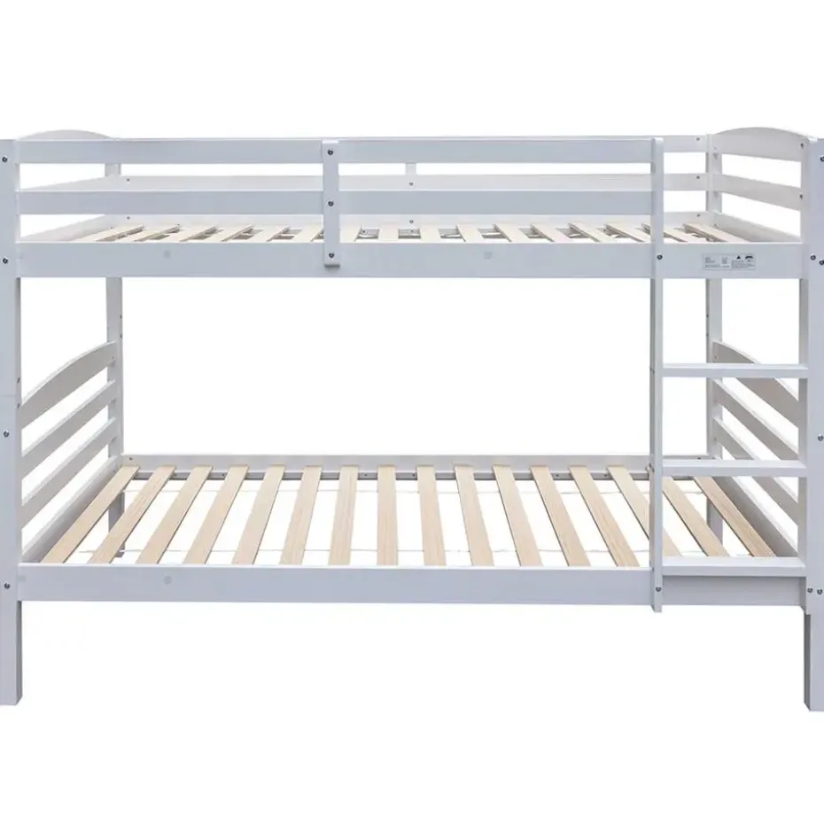Het stapelbed ‘Roy’ is gemaakt van massief dennenhout van hoge kwaliteit en staat garant voor duurzaamheid en een lange levensduur. De witte afwerking voegt een vleugje elegantie toe en past bij elke slaapkamerinrichting. De stevige constructie van dit stapelbed garandeert de veiligheid van je kinderen tijdens het slapen of spelen.