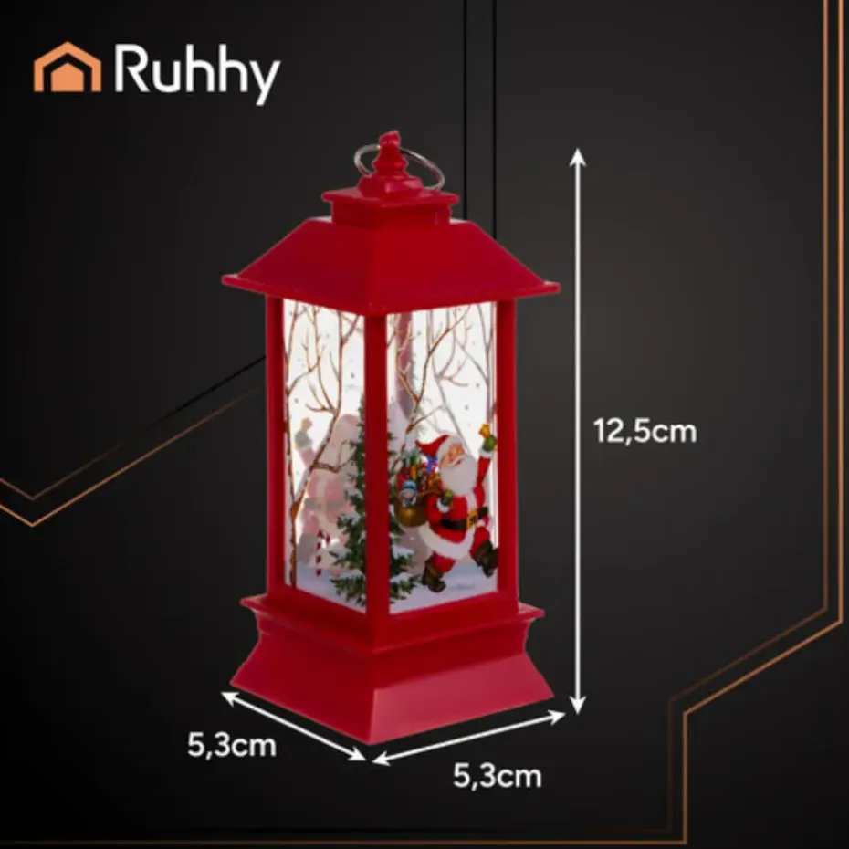 Kerstlantaarn van Ruhhy. Deze elegante RUHHY LED-lantaarn in rood voegt een stijlvol en sfeervol accent toe aan uw kerstversiering. Binnenin imiteert een energiezuinige LED-kaars op batterijen een warm, gezellig en volkomen veilig licht, zonder open vlam. Versierd met fijne kerstmotieven, creeert dit ornament direct de magie van de feestdagen in elke ruimte. Dankzij het draadloze ontwerp en de compacte afmetingen (12 x 5 x 5 cm) kan de lantaarn overal worden geplaatst, van de vensterbank tot de kersttafel.