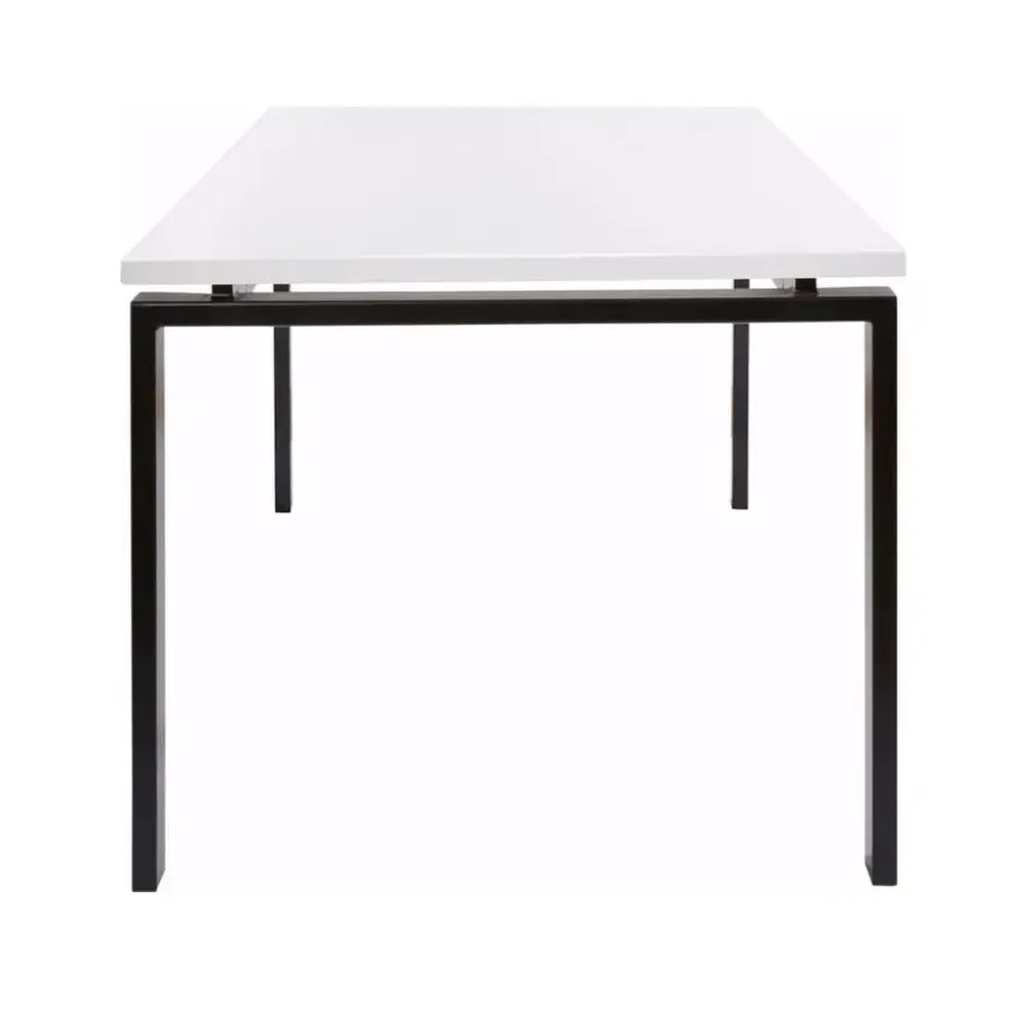 Deze prachtige, tijdloze eettafel valt op door zijn lineaire ontwerp. Hij heeft een massief, hoogglans gelakt rechthoekig tafelblad en een contrastkleurig metalen frame. Hierdoor kan hij gemakkelijk worden geïntegreerd in bestaand meubilair en nodigt hij je uit om gezellige uurtjes samen rond de tafel door te brengen. De tafel kan worden gecombineerd met een grote verscheidenheid aan stoelen – harmonieus met moderne zitmeubelen of als contrast met de meubels in een traditioneel landhuisontwerp. Het tafelblad is gemaakt van FSC®-gecertificeerd hout en de tafelpoten zijn gemaakt van stevig metaal.