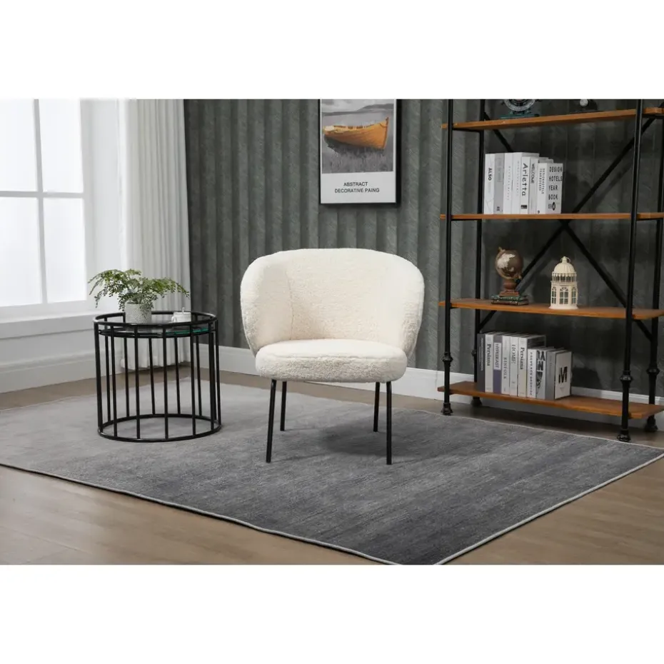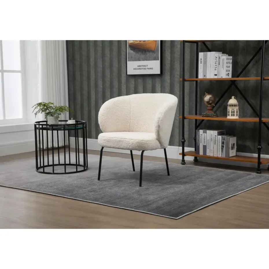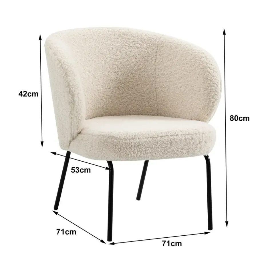 De BERGEN fauteuil met zijn moderne design heeft alles wat nodig is om uw interieur te verfraaien. Of het nu in uw slaapkamer, kantoor of woonkamer is, het zal zijn plek vinden. De brede rugleuning biedt een hoge kwaliteit ondersteuning. De premium bekleding van imitatie wol/bont met een superieure densiteit schuim biedt een hoogwaardig zitcomfort. De zwarte epoxy metalen poten zorgen voor stabiliteit en stevigheid voor langdurig gebruik. De fauteuil is gemakkelijk te onderhouden, een vochtige doek is voldoende om het schoon te maken.
