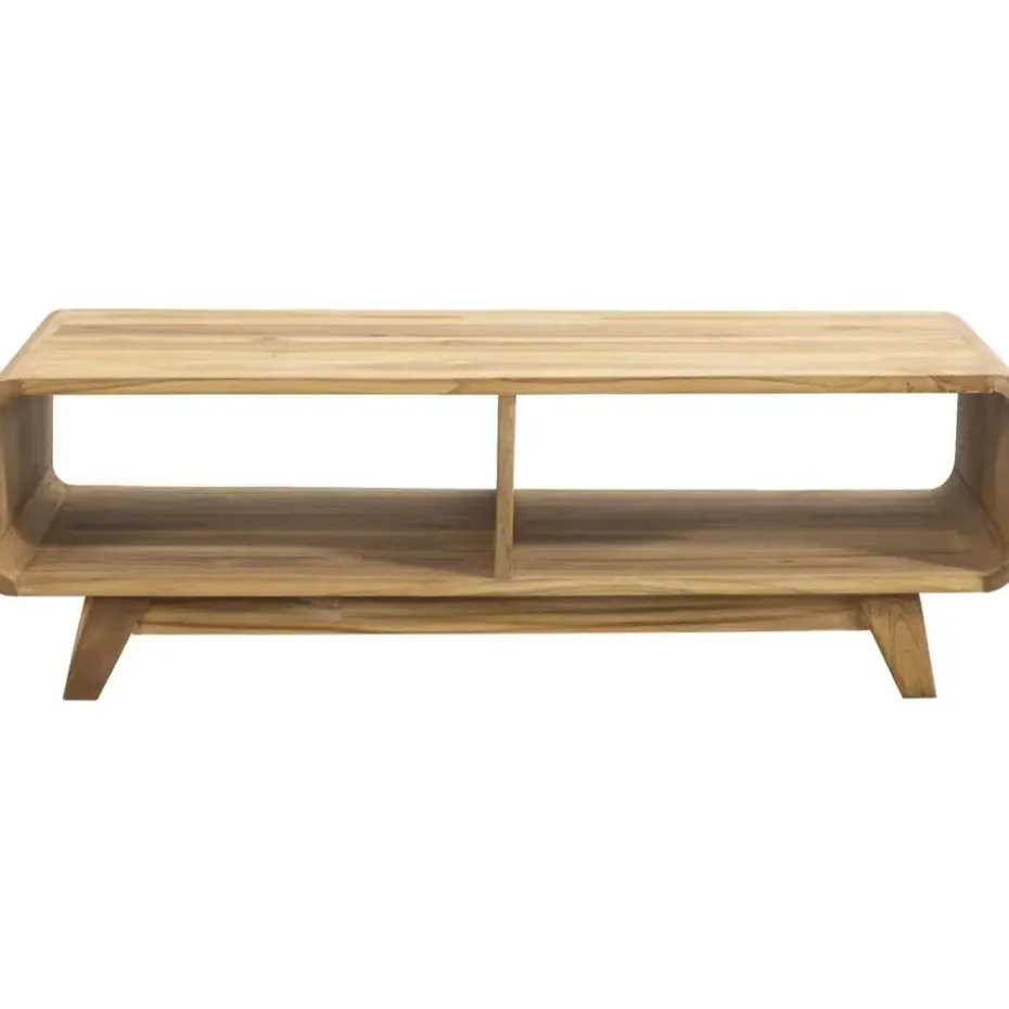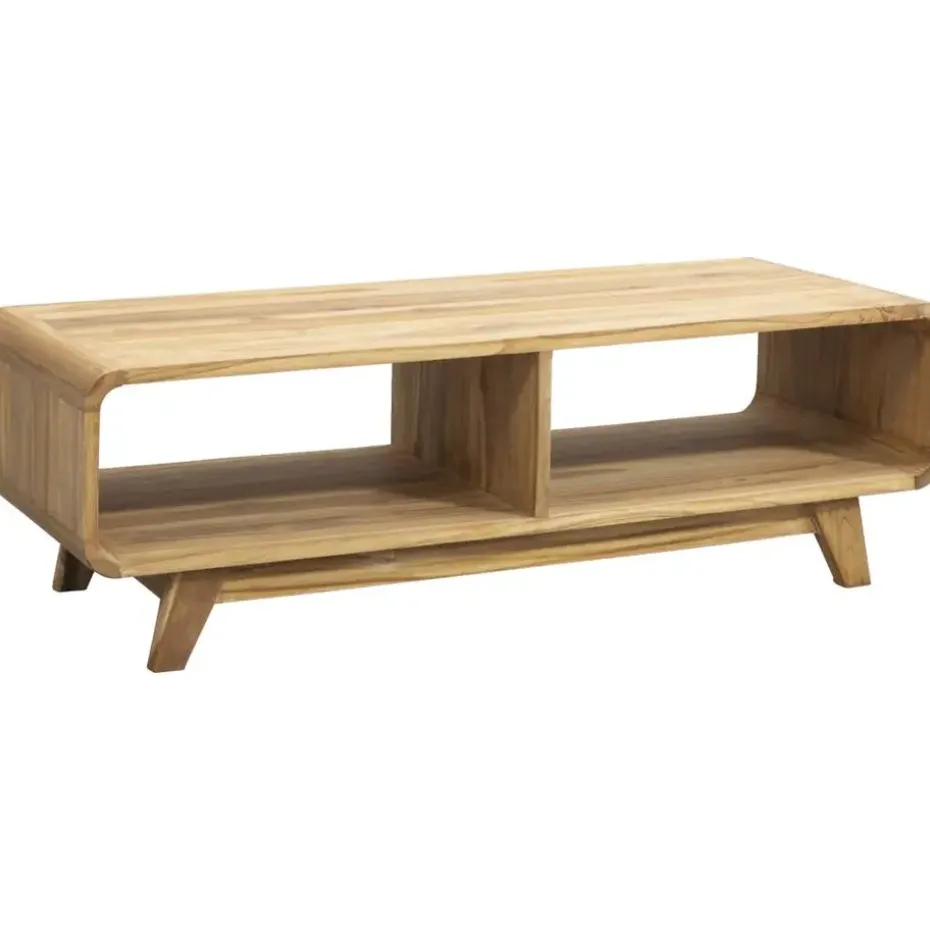 Salontafel Bulan is naturel van kleur en gemaakt van teakhout. De tafel heeft een ronde vorm, met open vakken, waarin je ook gemakkelijk spulletjes kwijt kunt. Altijd de afstandsbediening bij de hand, zonder dat deze in het zicht ligt, wat handig! Salontafel Bulan heeft een afmeting van 110x45x35 cm en past in ieder interieur.