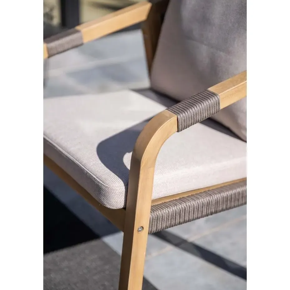 Santos dining fauteuil – acaciahout met white wash – rope taupe – grey sand