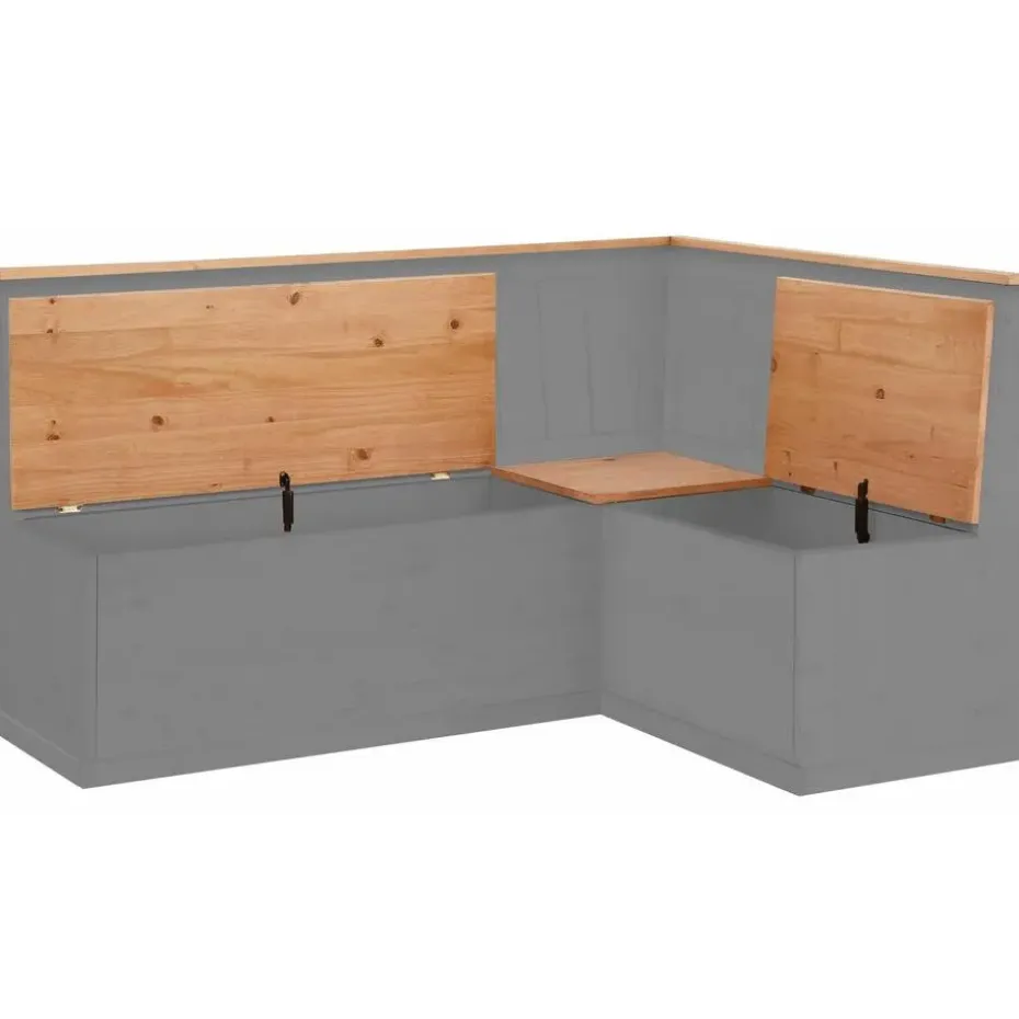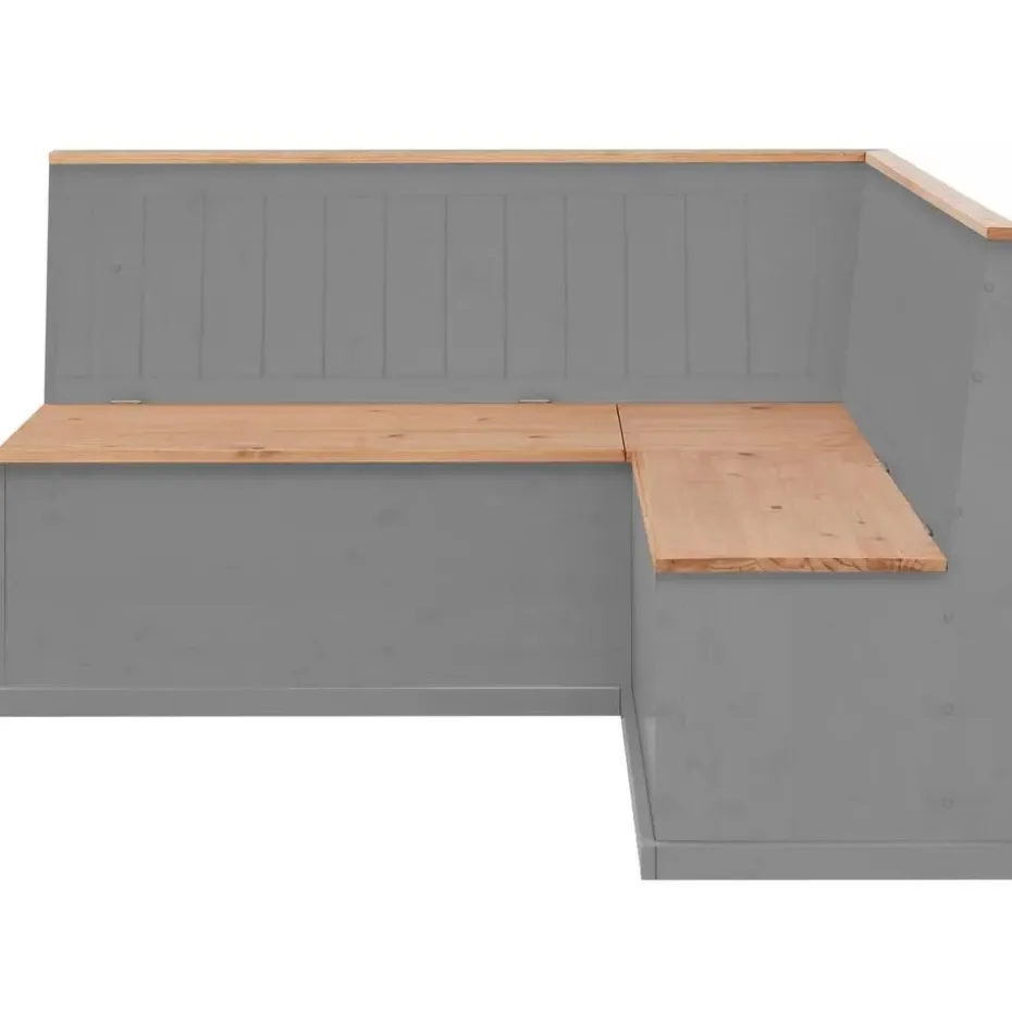 De hoekbank met praktische opbergruimte straalt een natuurlijke flair uit in de inrichting van je eetkamer. Hij vult je interieur aan in de trendy landelijke stijl en is ontworpen met prachtige houtlook accenten. Met zijn ingetogen kleuren kan de bank gemakkelijk gecombineerd worden met je bestaande inrichting. Onder de zitting is handige opbergruimte voor bijvoorbeeld kussens textiel of woonaccessoires. De bank is gemaakt van hoogwaardig massief grenen. De hoekbank met praktische opbergruimte past in elke woonstijl.