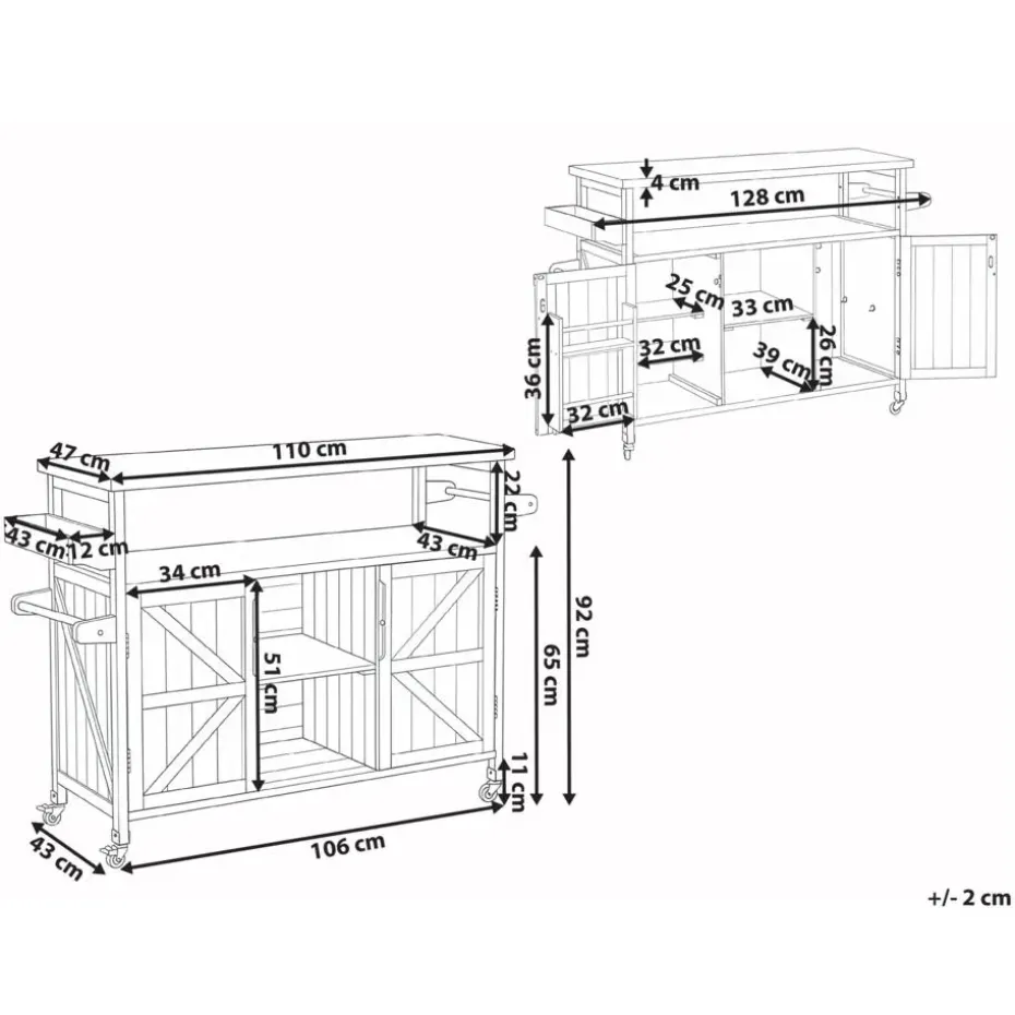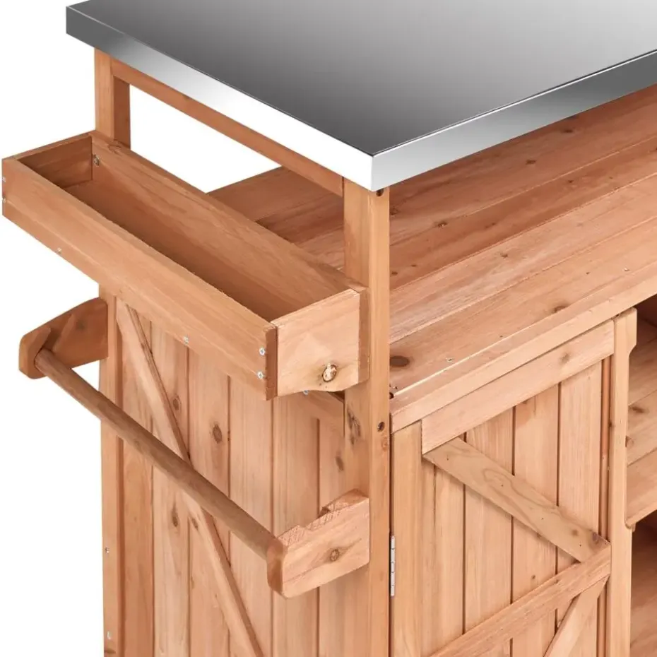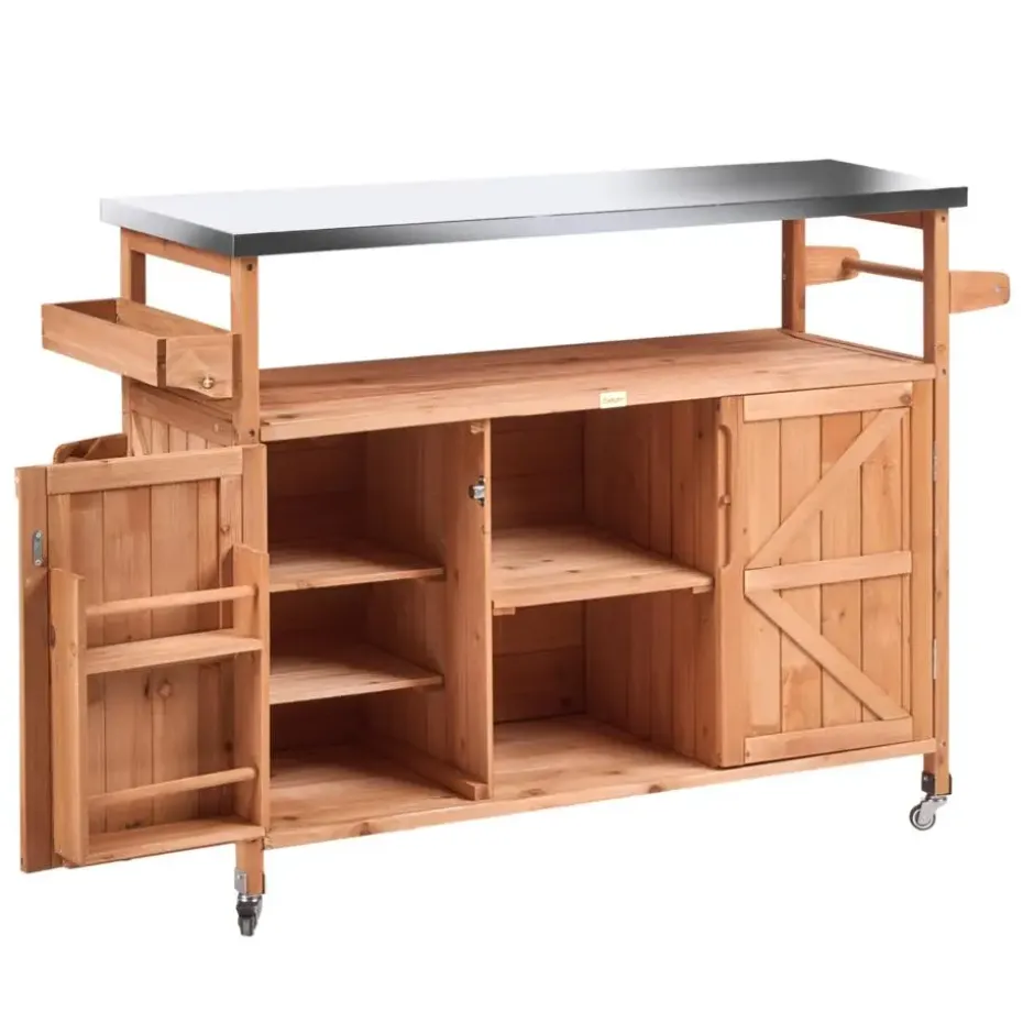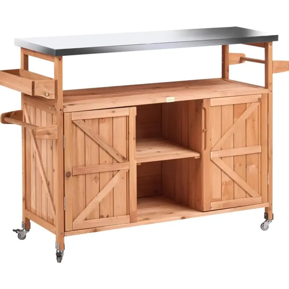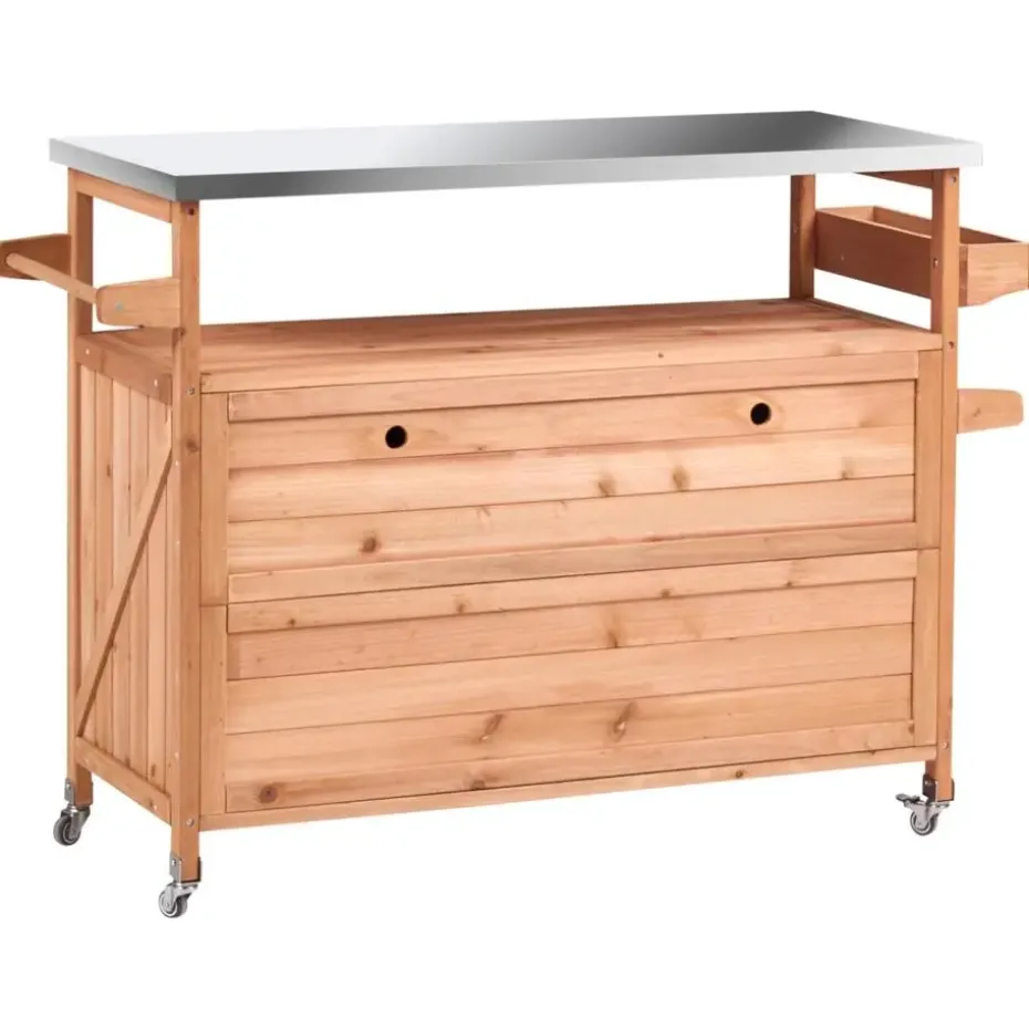 Belangrijkste eigenschappen: Zwenkwieltjes met rolbeveiliging, Met haakjes voor handdoeken en keukengerei, Verrijdbare poten voor het eenvoudig verplaatsen, Bescherming tegen zon, regen en stof, Modern terras- en tuinmeubilair, Hoogwaardig materiaal, Extra opbergruimte