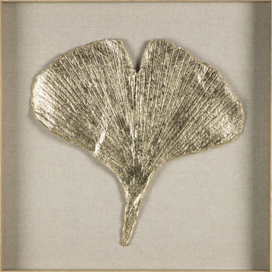 Schilderij Ginko is een sfeervolle wanddecoratie met een afmeting van 50×50 cm. Het ontwerp bestaat uit een beige canvas waarop een goudkleurig blad centraal staat, geïnspireerd op de elegante vorm van het ginkgoblad. De combinatie van het warme canvas met het glanzende blad zorgt voor een stijlvol contrast dat direct de aandacht trekt. De MDF-lijst geeft het geheel een strak en modern kader, terwijl het vensterglas aan de voorkant het kunstwerk beschermt tegen stof en beschadiging. Dankzij het compacte formaat is dit schilderij ideaal voor kleinere wanden of als onderdeel van een collage. De zachte achtergrond en het glanzende accent maken dit kunstwerk een subtiele blikvanger die luxe uitstraalt zonder opdringerig te zijn. Als je op zoek bent naar een decoratief paneel met een stijlvolle glans, een beschermende afwerking en een natuurlijk accent, dan is schilderij Ginko een goede keuze.