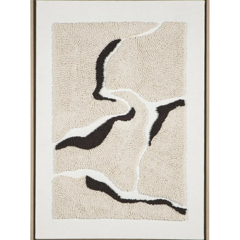 Dit schilderij Noé heeft een afmeting van 70×50 cm en is omlijst met een beige MDF-frame dat zorgt voor een strakke en neutrale afwerking. Op het doek zie je een compositie van abstracte vormen in crème, zwart en wit, die samen een krachtig maar evenwichtig beeld vormen. De contrasterende kleuren zorgen voor diepte en dynamiek, terwijl de rustige tinten het geheel toegankelijk maken voor verschillende interieurstijlen. Het MDF-materiaal maakt het schilderij licht en stevig, ideaal om eenvoudig op te hangen of te combineren met andere wanddecoratie. Als je op zoek bent naar een modern, stijlvol en veelzijdig kunstwerk met een abstract karakter, dan is schilderij Noé een goede keuze.