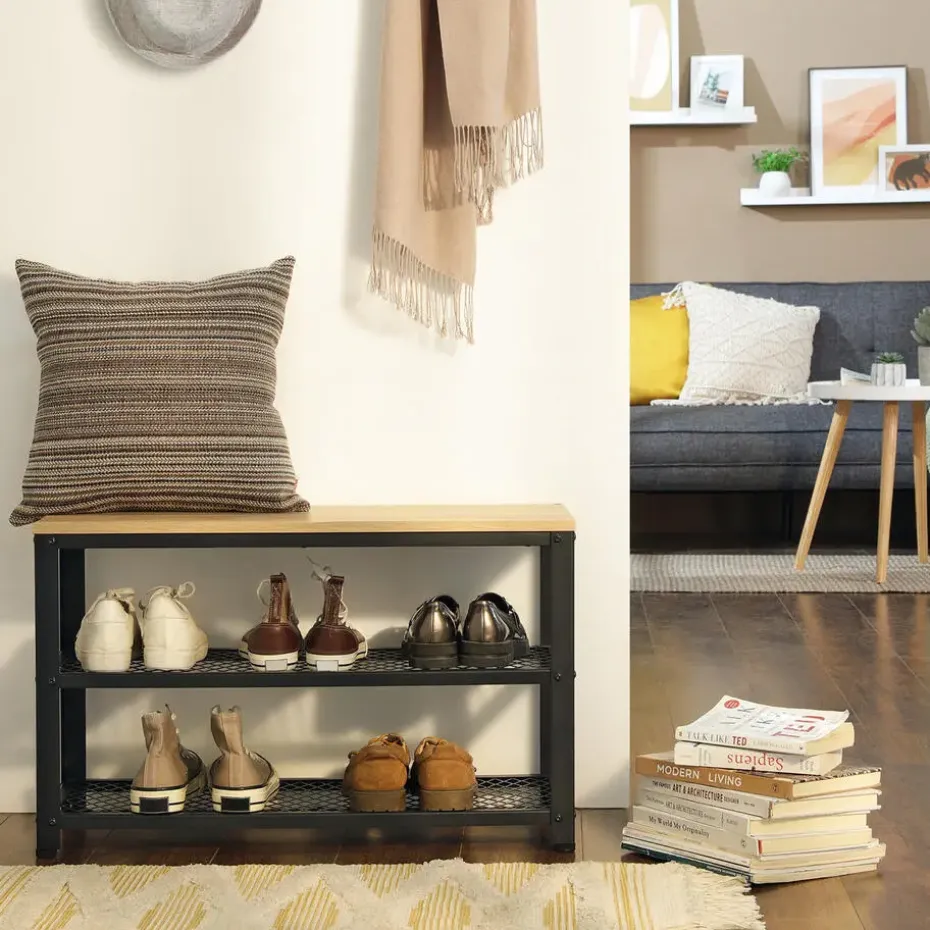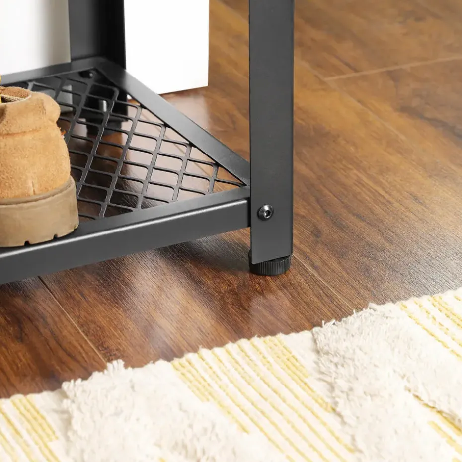 Dit schoenrek met bankje heeft 4 voetjes die voor een goede stabiliteit zorgen, zelfs op een licht oneffen ondergrond. Ze beschermen de vloer ook tegen krassen. Met een draagvermogen van 90 kg kan je rustig je sneakers of andere schoenen aantrekken.