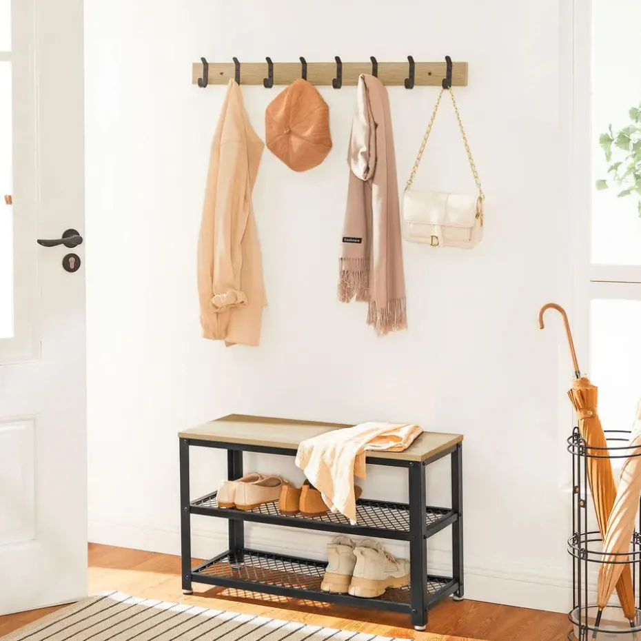 Dit opbergrek heeft 3 niveaus en neemt weinig ruimte in beslag. Het rekje biedt toch een grote capaciteit om je schoenen op te bergen en aan te trekken. De subtiele kleur van licht eiken zal een zuivere en elegante toets geven aan uw inkomhal, entree of slaapkamer.