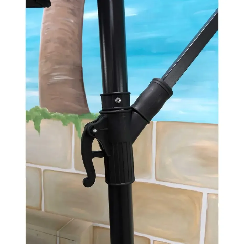 De parasol is eenvoudig in- en uit te klappen. Het sterke doek wordt ondersteund door 8 ribben en creëert een extra grote schaduwplek. Door het handvat verder naar boven- of onder te verschuiven kan de parasol gekanteld worden. Ingeklapt hangt het doek strak tegen het statief zodat de parasol zo min mogelijk plek inneemt.