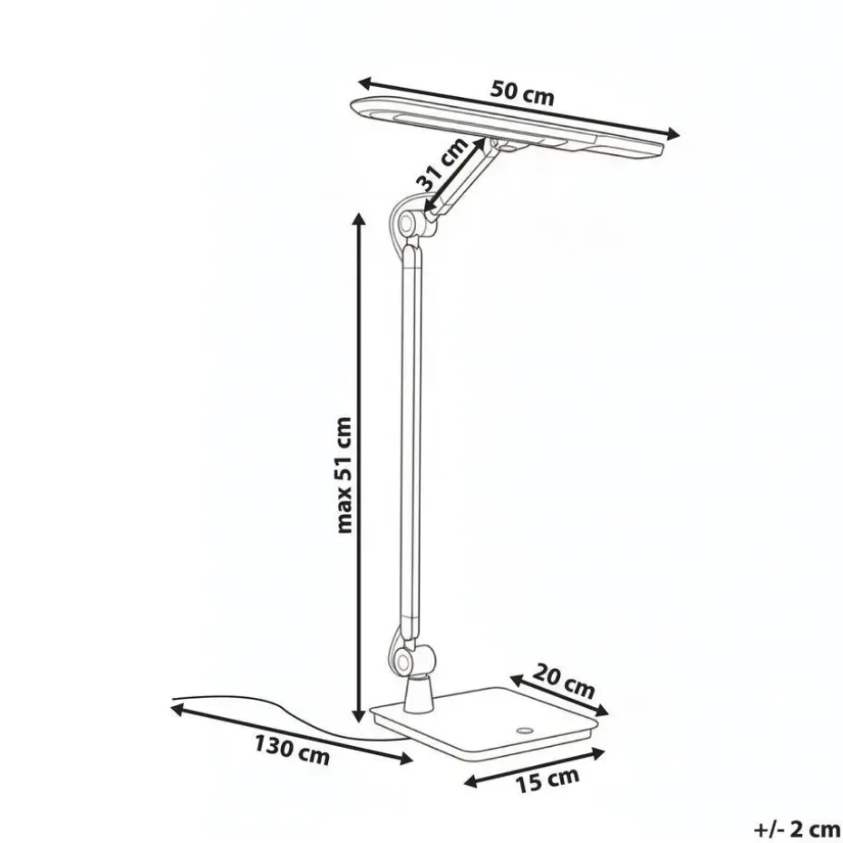 Belangrijkste eigenschappen: Dimmerfunctie om het lichtniveau aan te passen, Lange kabel voor gemakkelijke toegang tot stroom, Touch sensor-schakelaar, Verstelbare hoogte, Trendy design en kleur, Met 3 lichtstanden voor verschillende licht tempraturen