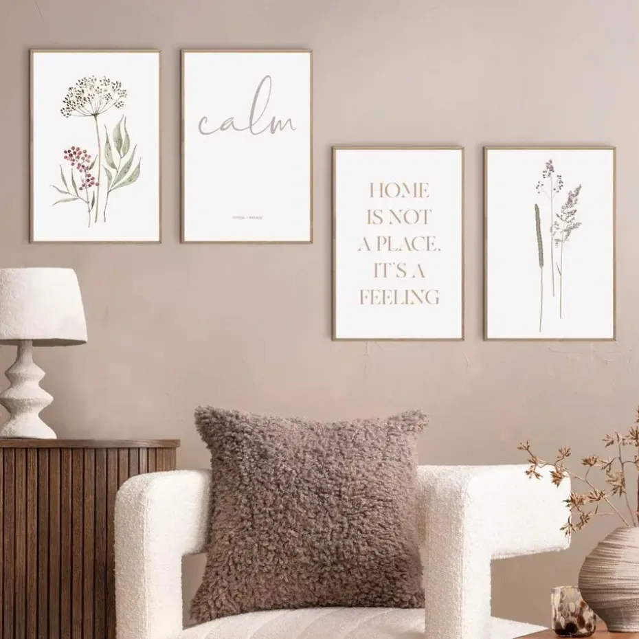 Geef je interieur een persoonlijke touch met de Mix & Match 4pcs set. Deze set bestaat uit vier harmonieuze schilderijen in het formaat 20x30cm, gedrukt op stevig MDF van 3 mm dik met een eikhoutkleurige lijst. De ontwerpen sluiten perfect op elkaar aan en kunnen zowel opgehangen als neergezet worden, bijvoorbeeld op een plank, kast of dressoir. Dankzij het tijdloze design zijn ze makkelijk te combineren met verschillende woonstijlen, zoals modern, Scandinavisch of minimalistisch. Ideaal voor een speels effect aan de muur of om een lege hoek sfeervol aan te kleden. Kenmerken