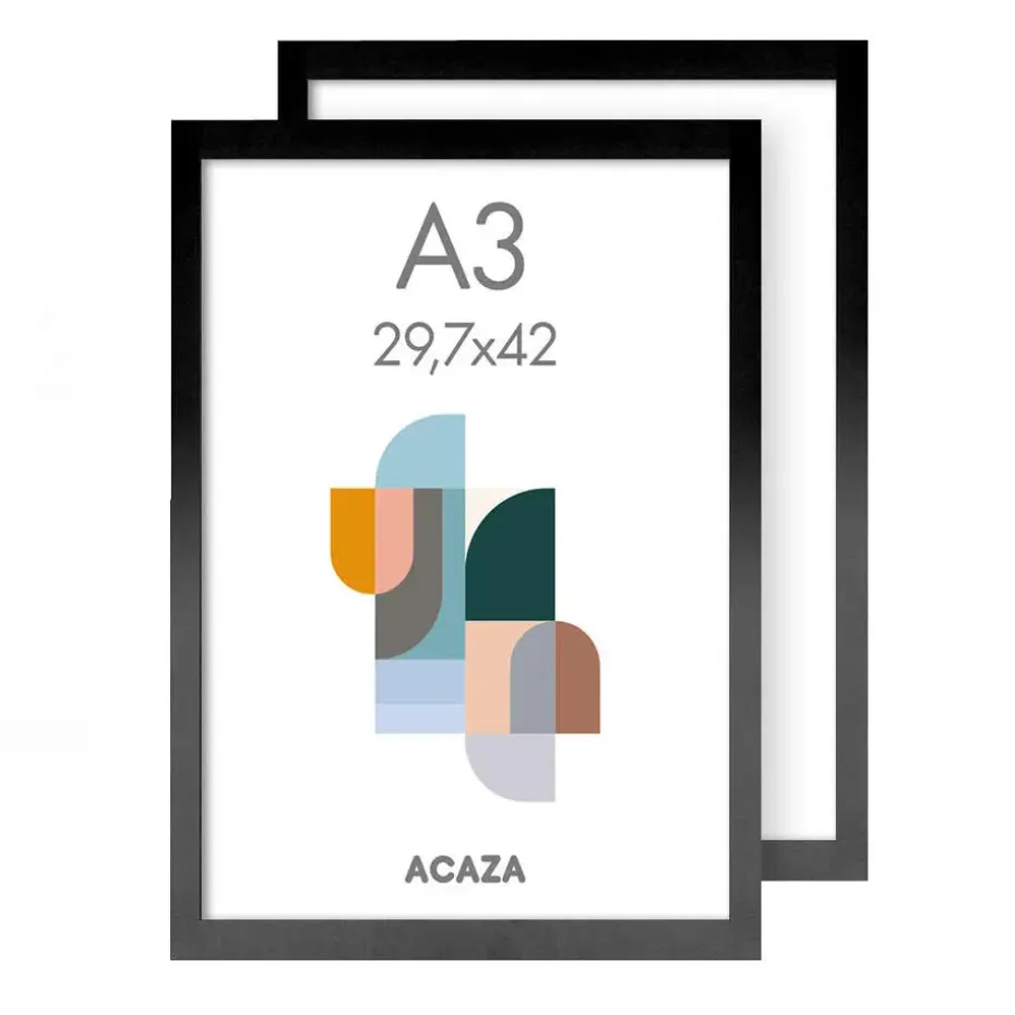 Dankzij deze set van 2 houten lijsten kan je al jouw foto’s, posters en affiches in A3 formaat een plaatsje aan de muur geven. De zwarte fotolijsten zijn aan de achterkant voorzien van metalen hangers waarmee je ze zowel horizontaal als verticaal aan de muur kan bevestigen. Om het plexiglas te beschermen tijdens het transport, is het langs beide kanten van een folie voorzien. Deze folie is voor gebruik gemakkelijk te verwijderen.