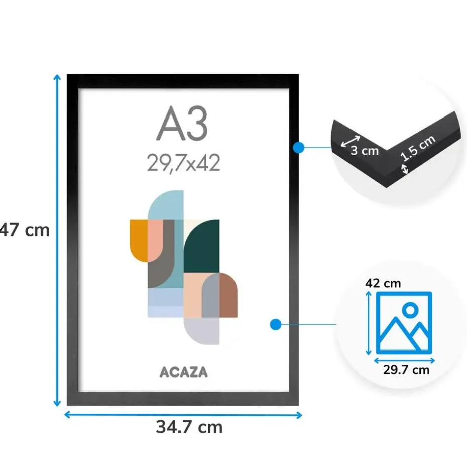– Afmetingen: geschikt voor foto’s of posters in A3 formaat (= 29,7×42 cm)