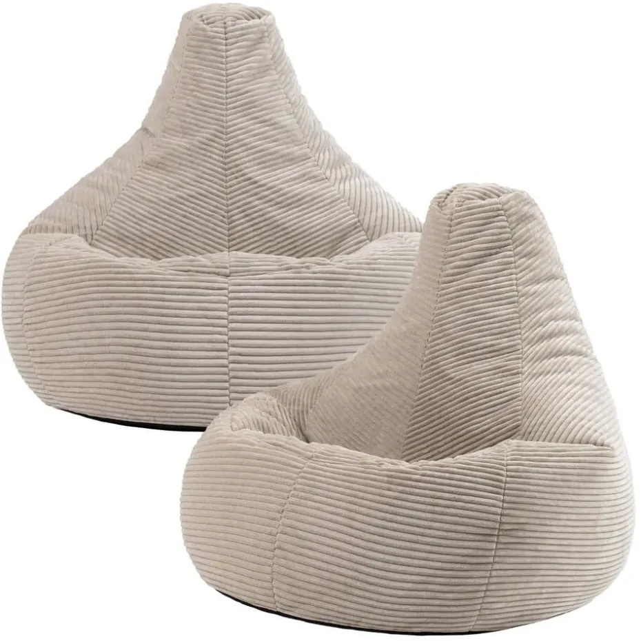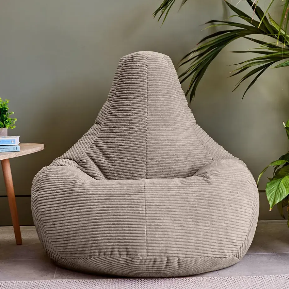 RELAX EN LEUN ACHTEROVER; Deze zitzakzetel is gemaakt om lang in te zitten, vervaardigd in super zacht corduroy en gevuld met precies de juiste hoeveelheid kralen voor een perfect ondersteunend inzakeffect.