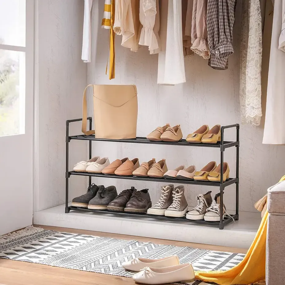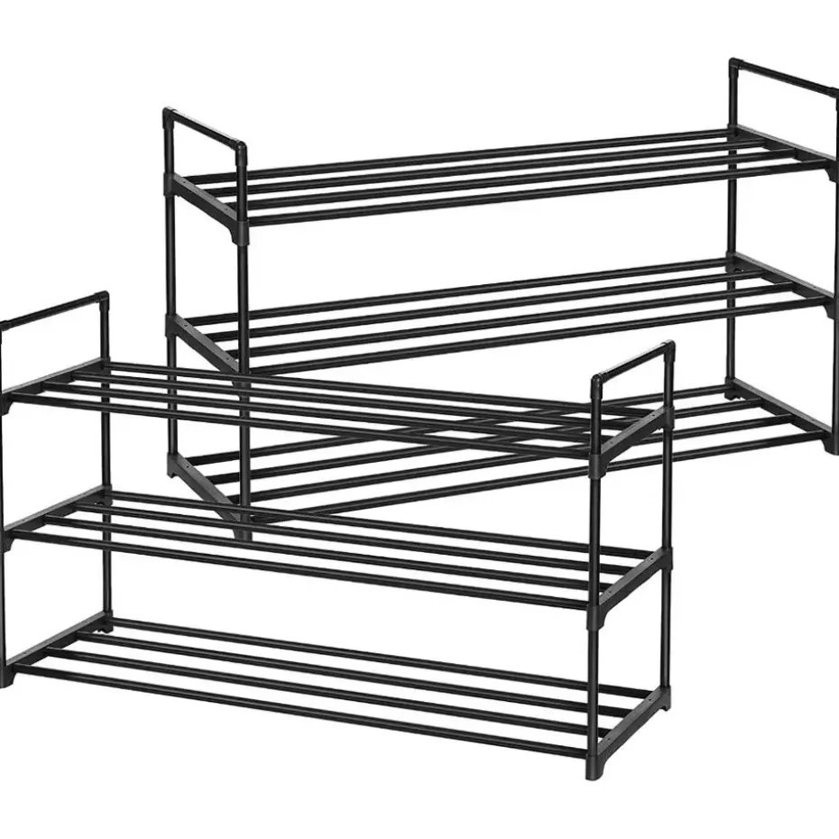 Heeft u ook zoveel schoenen? En droomt u van netjes naast elkaar geplaatste schoenen? Dan maakt deze set van 2 schoenenrekken uw droom waar! Ze bieden plaats voor zo’n 24 paar schoenen en zijn hierdoor dus zeer praktisch. Heeft u ook enkellaarsjes die u wil opbergen, maar zijn ze iets te hoog? Geen probleem, verwijder dan gewoon een legplank! Super handig, u kan de schoenenrekken apart gebruiken of op elkaar stapelen. Gemaakt van robuuste, metalen buizen met hoogwaardige verbindingsstukken in kunststof, bieden de schoenenrekken een uitstekende stabiliteit.