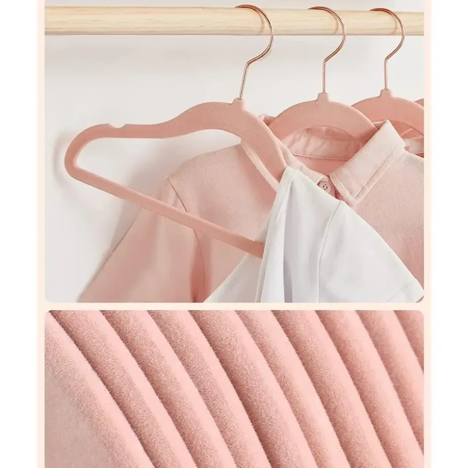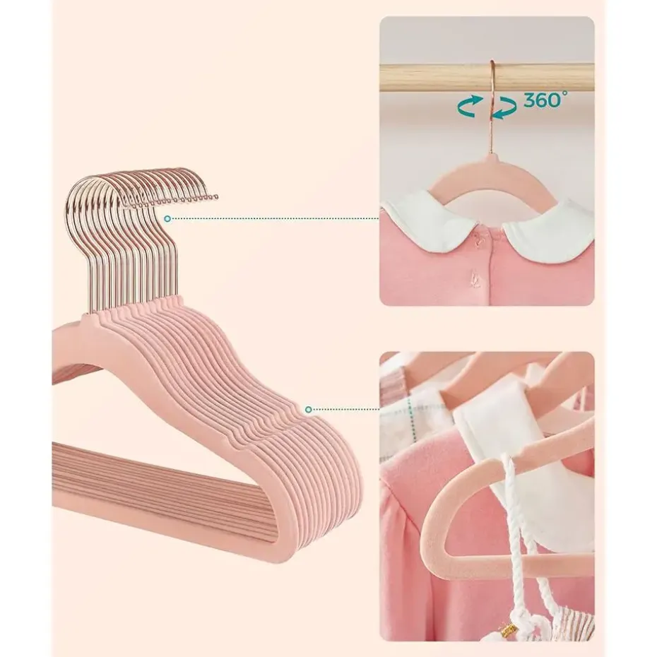 Vallen kleren vaak op de vloer van de kleerkast? Deze 30 lichtroze en zachte fluwelen kleerhangers houden de kinderkleren stevig op hun plaats.