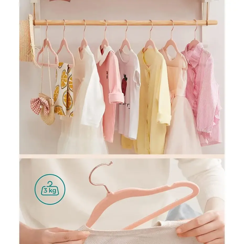 Elke fluwelen hanger van ABS kunststof is duurzaam en kan tot 3 kg dragen, zodat de winterjassen of zware jeans van uw kind veilig blijven