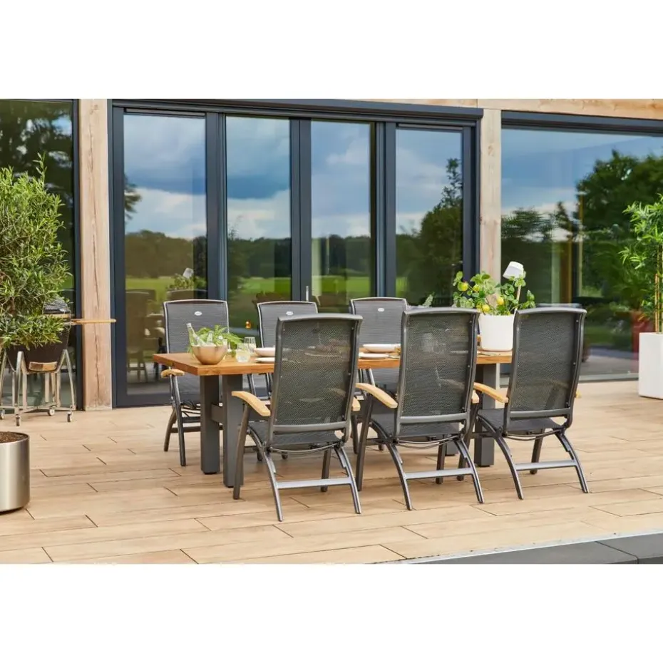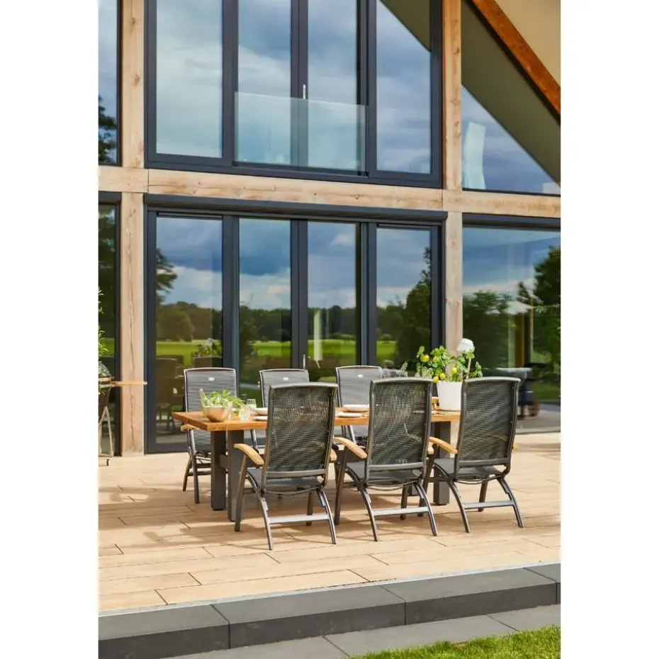 Dit is 4x de Da Vinci verstelbare tuinstoel van het bekende tuinmeubelmerk Hartman. Deze mooie standen stoel van het bekende merk Hartman is door de combinatie van textileen en aluminium geheel onderhoudsvrij. De rugleuning van deze Da Vinci standenstoel is voor gevormd geeft daarom steun in u rug wat ervoor zorgt dat u extra lekker kunt zitten. De Hartman Da Vinci tuinstoel is inklapbaar, dit zorgt ervoor dat deze compact is op te bergen. De stoel is te cobineren met alle aluminium tafels.