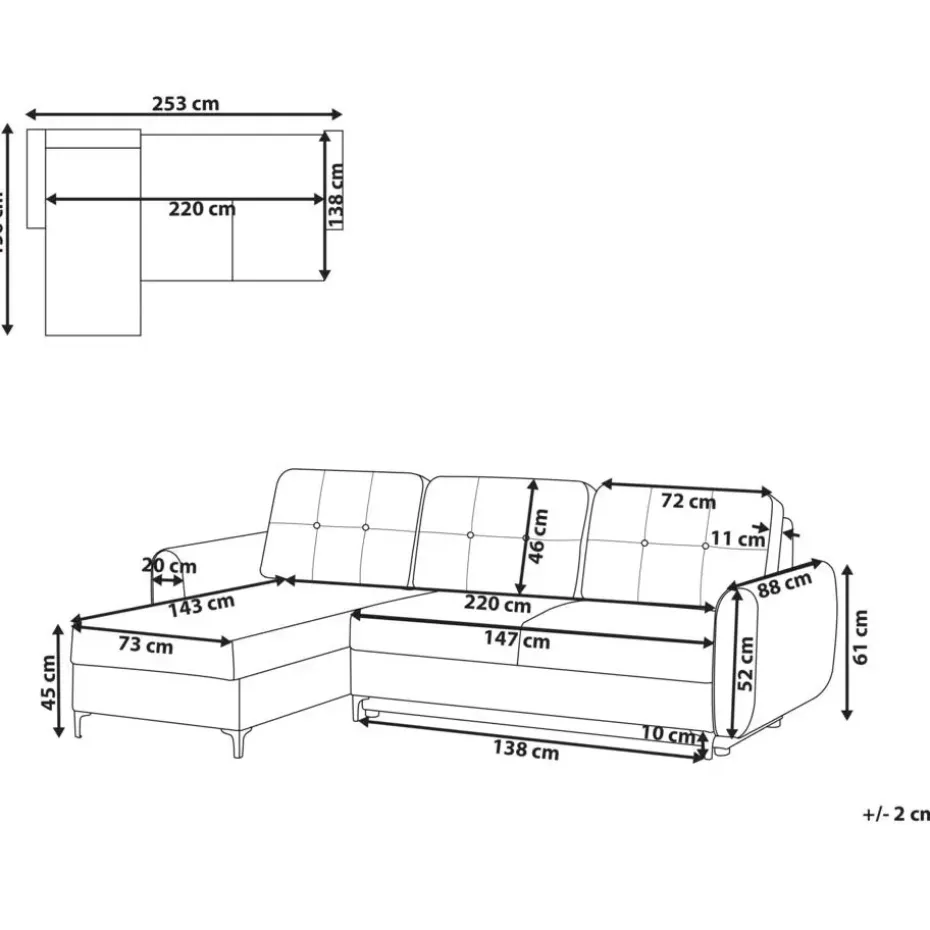 Belangrijkste eigenschappen: Zeer gemakkelijk te veranderen in een bed, Dik gevoerd voor het uiterste comfort, Tijdloos design, Hoogwaardige kwaliteit stoffering, Solide afwerking, Praktische opslagruimte, Verwijderbare kussenhoezen, Rondom bekleed en dus vrij op te stellen