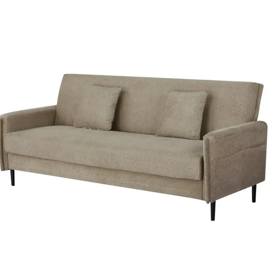 Materiaal: De Torvi slaapbank is vervaardigd uit een combinatie van stof en metaal. Deze materialen zorgen voor een stevige constructie en een comfortabele zitervaring. De stof biedt een zachte en uitnodigende uitstraling, terwijl het metaal zorgt voor een robuuste en duurzame basis.