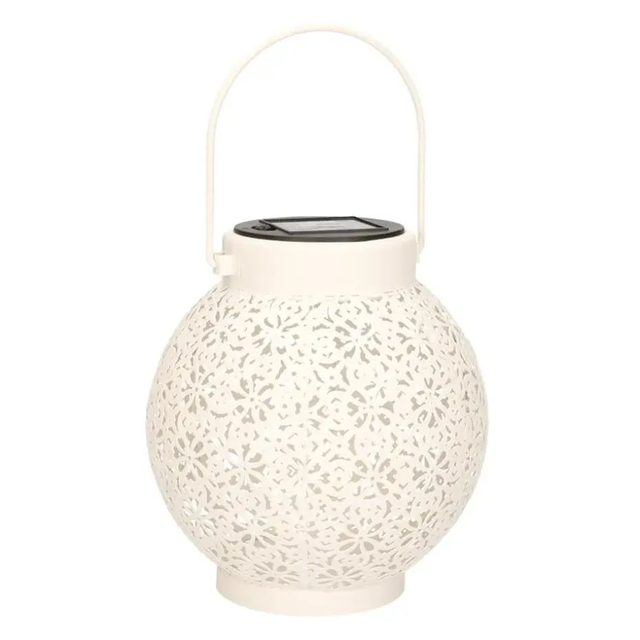 Maak je terras of balkon sfeervol met de ronde solar lantaarn met design. Geef de lantaarn een centraal plekje om zowel overdag als in de avond van het windlicht te genieten. Ook leuk om cadeau te geven aan vrienden en familie. De brandduur hangt af van de weersomstandigheden, 8 uur volle zon zorgt voor een maximaal aantal branduren. De tafellamp heeft warm wit licht.
