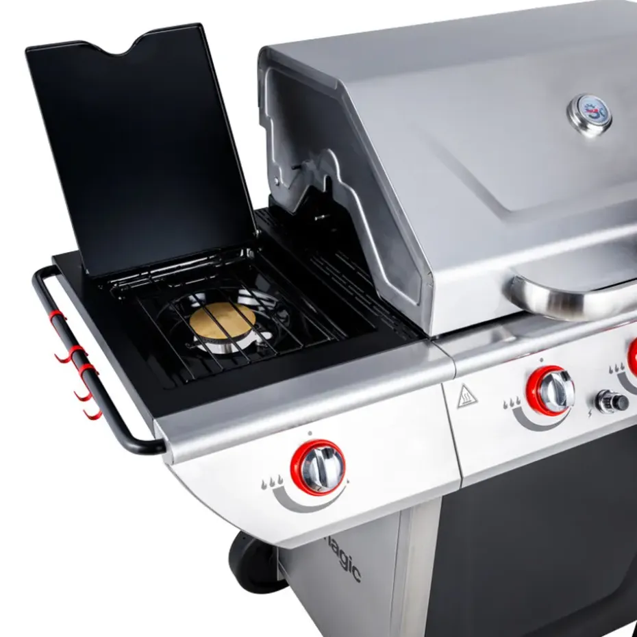 MANHATTAN 350GPI Gasbarbecue – 3 branders 10,5kW + warmhoudlade is een ideaal buitenproduct. De stalen constructie zorgt voor optimale duurzaamheid. Hij is draagbaar en compact, kookt met authentieke houtskool en is gemakkelijk schoon te maken. Eenvoudig in gebruik en onderhoud, perfect voor iedereen die praktisch en efficiënt wil zijn.