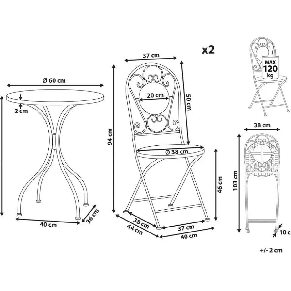 Aanbod omvat: 1 x Tafel, 2 x Stoel