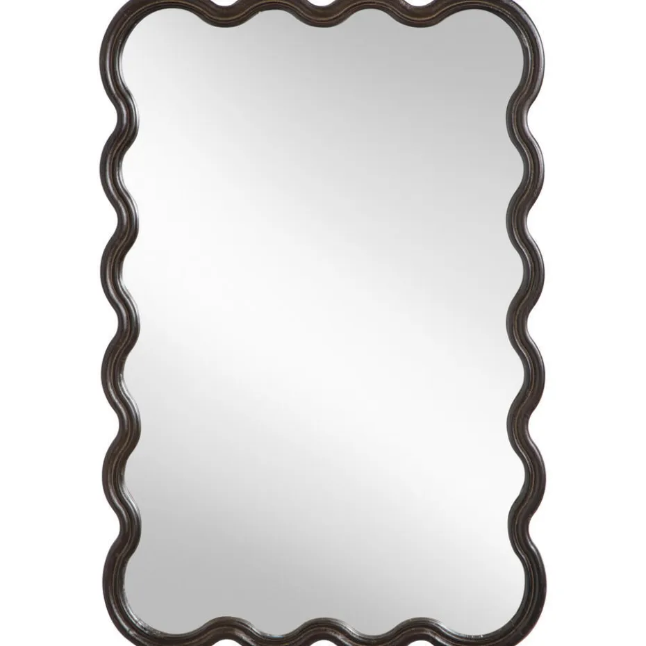 Spiegel Sevilla heeft een afmeting van 85×45 cm en is voorzien van een golvende bruine lijst die zorgt voor een opvallend en eigentijds design. De stevige omlijsting biedt stabiliteit en behoudt zijn vorm, waardoor de spiegel langdurig mooi blijft. De bruine kleur geeft een strakke en moderne uitstraling, die een krachtig contrast vormt met de reflecterende oppervlakte en daardoor de ruimte extra karakter geeft. Het golvende profiel zorgt voor een speels effect en maakt de spiegel tot een uniek decoratief element aan de muur. Met het formaat van 85×45 cm is deze spiegel geschikt voor diverse ruimtes, zoals de hal, slaapkamer of woonkamer. Als je op zoek bent naar een spiegel met een stevig frame en een opvallende, moderne uitstraling, dan is spiegel Sevilla met golvende bruine lijst een goede keuze.