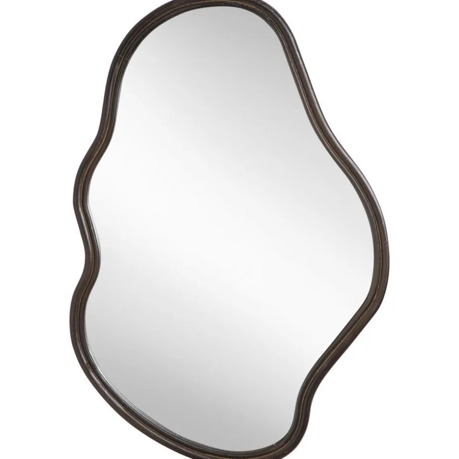 Spiegel Wenen heeft een afmeting van 70×40 cm en is voorzien van een organisch gevormde bruine lijst van MDF. Dit stevige materiaal zorgt voor een duurzame omlijsting die zijn vorm behoudt en lang meegaat. De bruine kleur van het frame geeft een tijdloze en elegante uitstraling, terwijl de vloeiende, organische vorm zorgt voor een zachte en moderne touch in je interieur. Door het compacte formaat is deze spiegel geschikt voor kleinere ruimtes zoals de hal, badkamer of slaapkamer, waar hij zorgt voor meer licht en een ruimtelijk effect. Het ontwerp combineert functionaliteit met een stijlvol accent, waardoor de spiegel zowel praktisch als decoratief is. Als je op zoek bent naar een stevige spiegel met een elegante bruine omlijsting en een zachte, organische vorm, dan is spiegel Wenen een goede keuze.