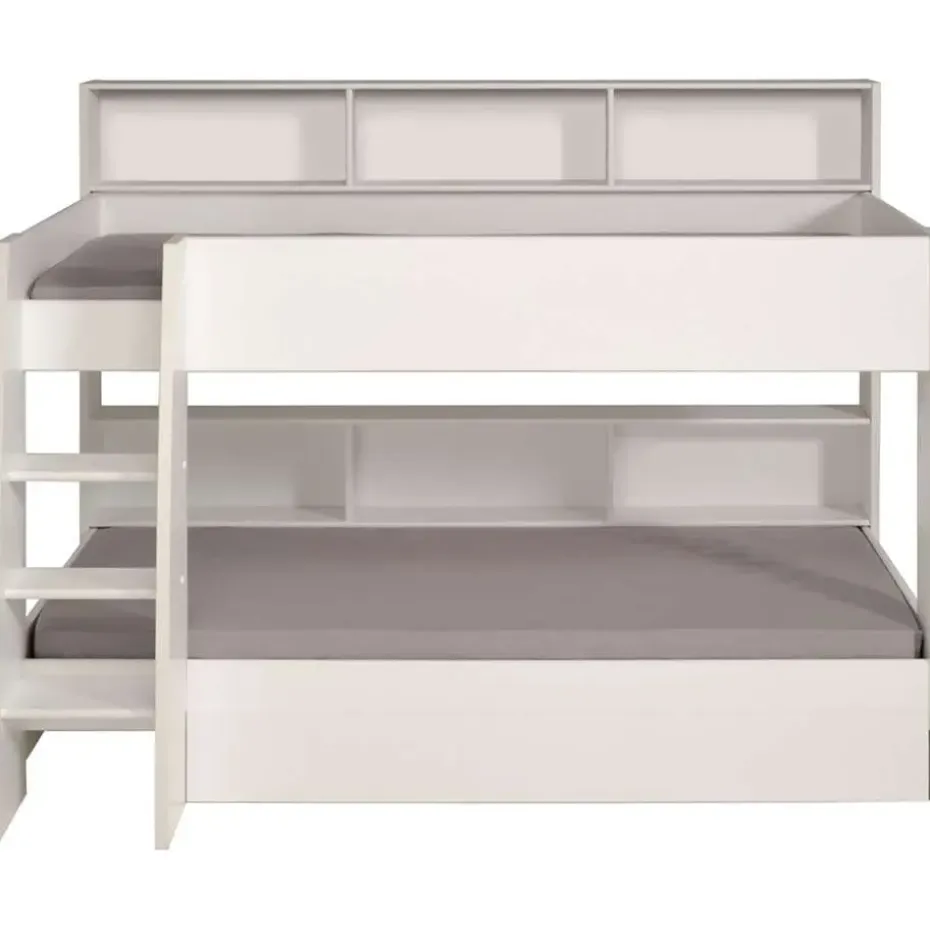 Dit superleuke stapelbed is gemaakt van spaanplaat afgewerkt in een wit decor. Zowel het bovenste als het onderste bed hebben een handig (boeken)kastje met een gekleurde achterplaat. De achterplaat is wit aan de ene kant en eikendecor aan de andere zijde. Zo kun je dus zelf kiezen welke kleur je op het voorplan brengt.