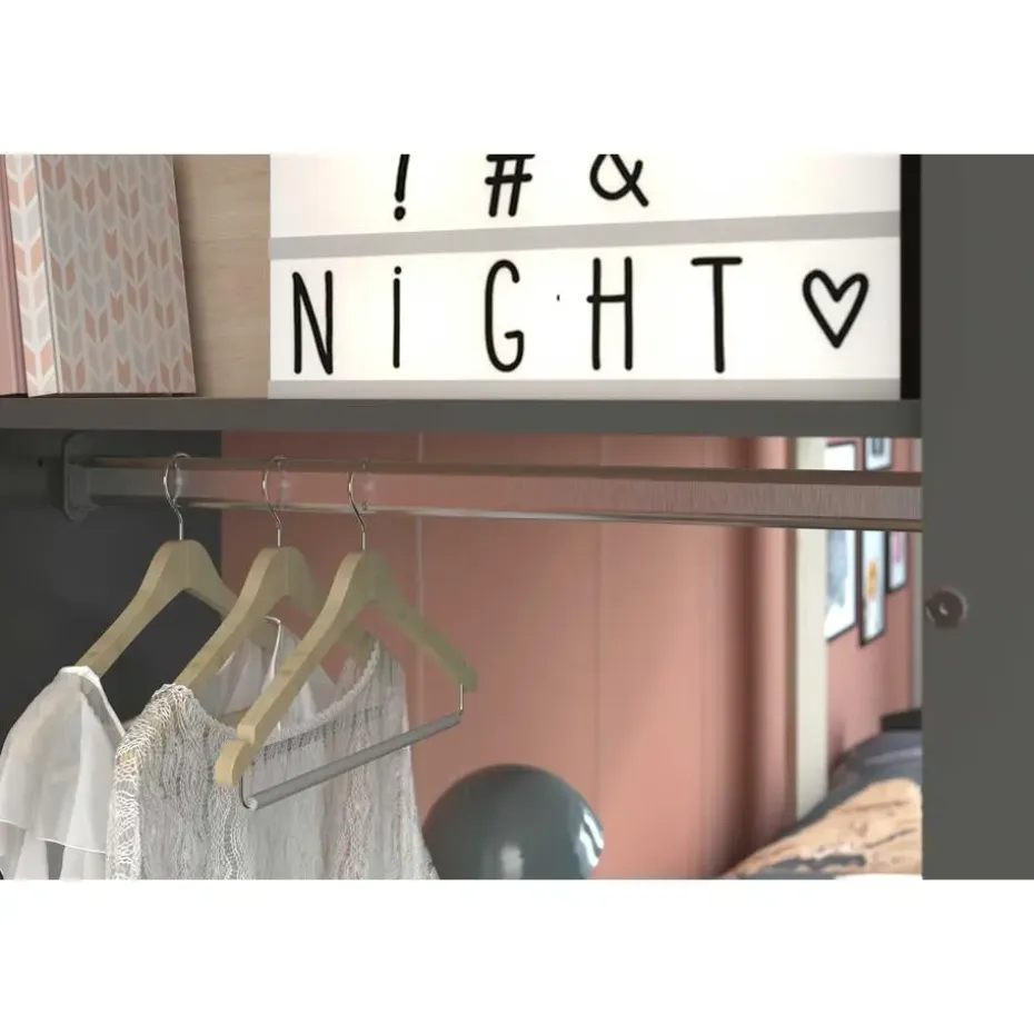- een legplank om boeken of andere kleine spulletjes op te plaatsen met daaronder een kledingroede (lengte: 60 cm)