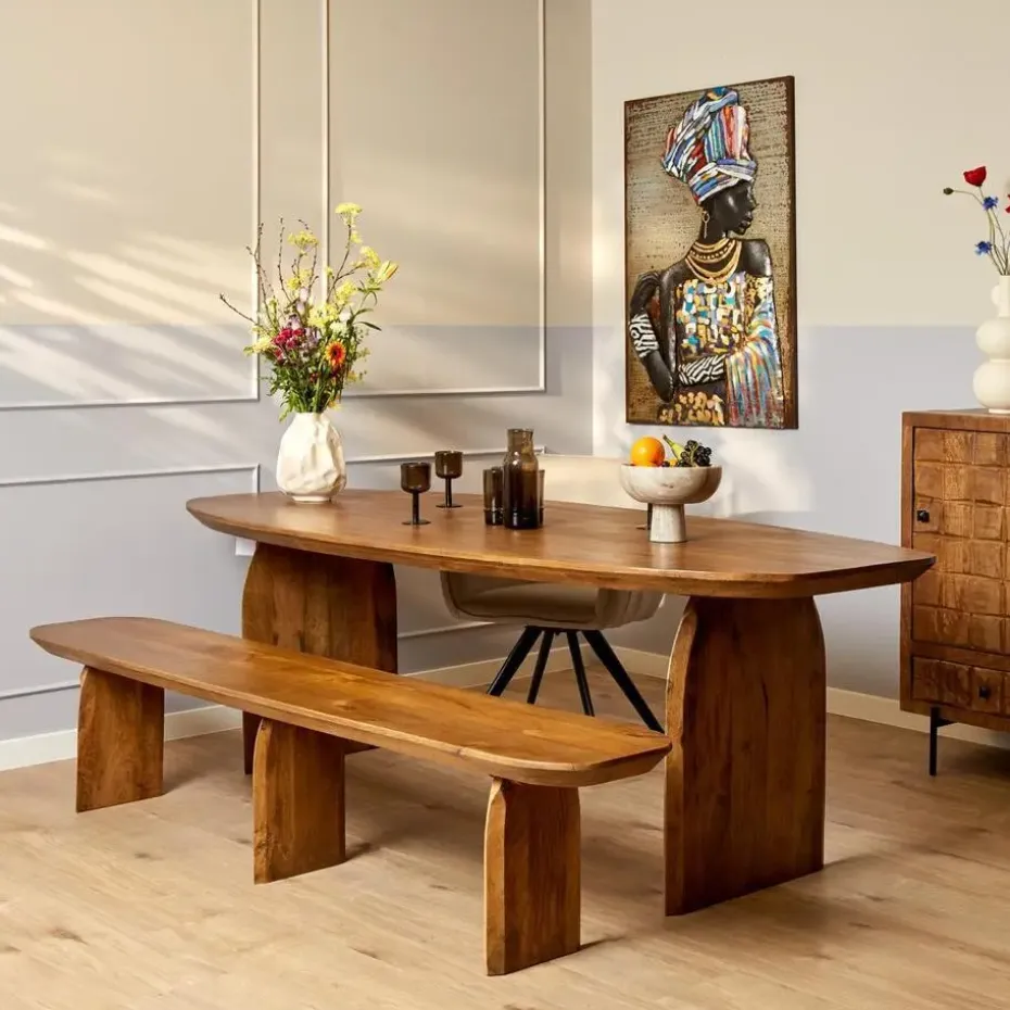 De Eetkamerbank Tense 280 cm is een stijlvolle en comfortabele toevoeging aan je eetkamer. Deze bank is volledig uitgevoerd in massief mango hout, wat garant staat voor een hoogwaardige kwaliteit en een natuurlijke uitstraling.