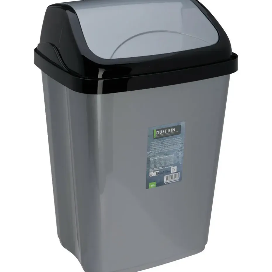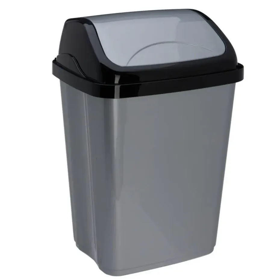 Afvalemmer SWING in de kleuren grijs/zwart, met inhoud van 16 liter – met klepdeksel.