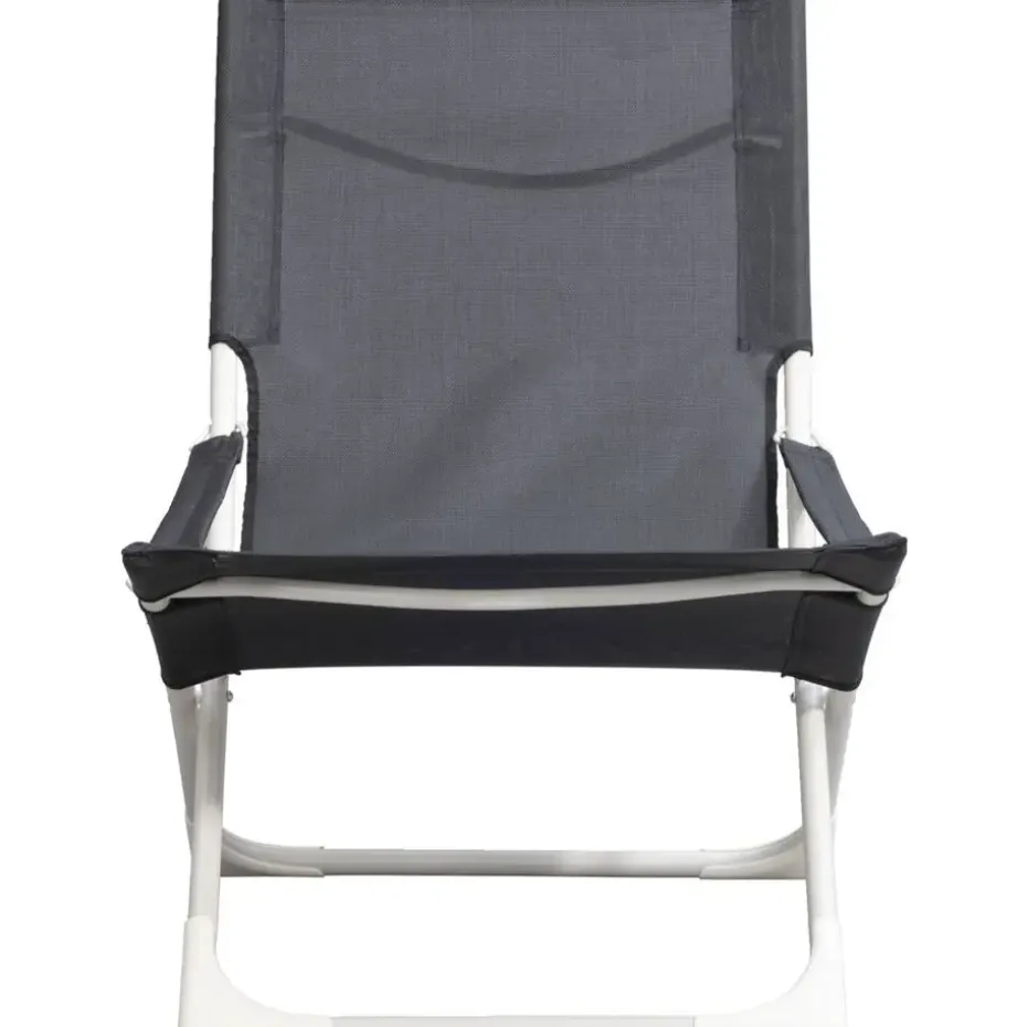 Strandstoel Rimini is gemaakt van beigekleurig metaal en een antracietkleurige zitting van textileen. Deze strandstoel is gemakkelijk in gebruik en ideaal voor een dagje strand.