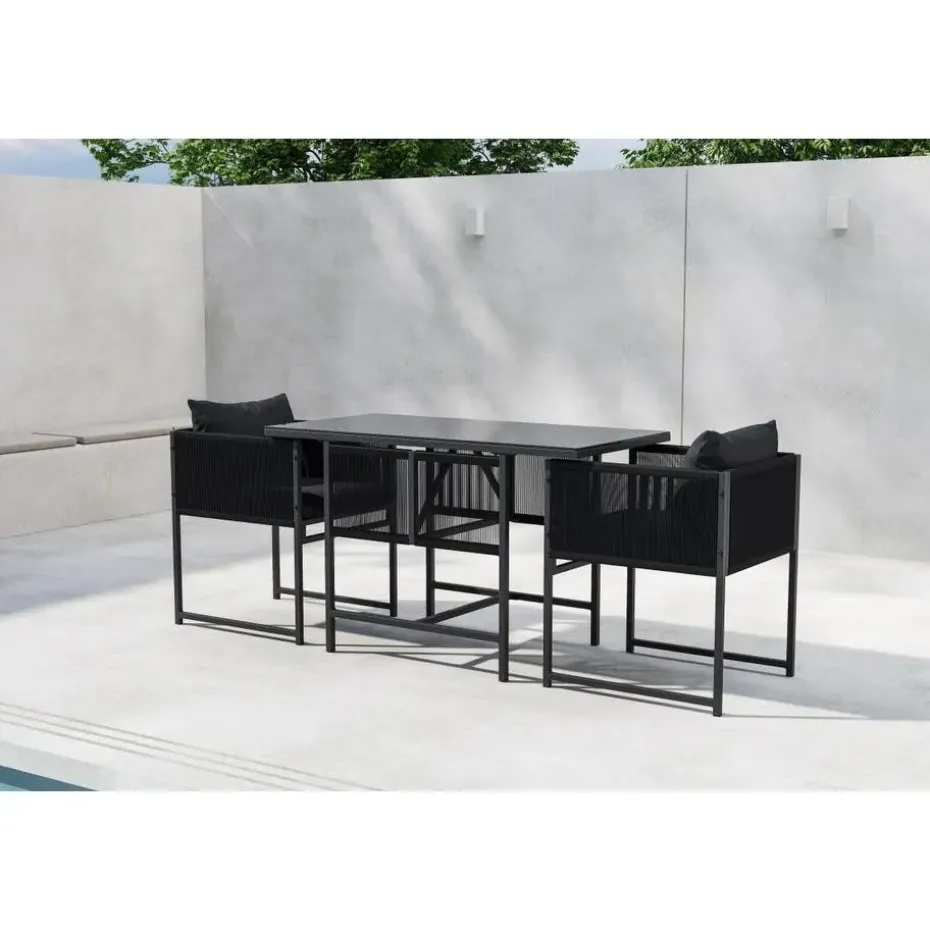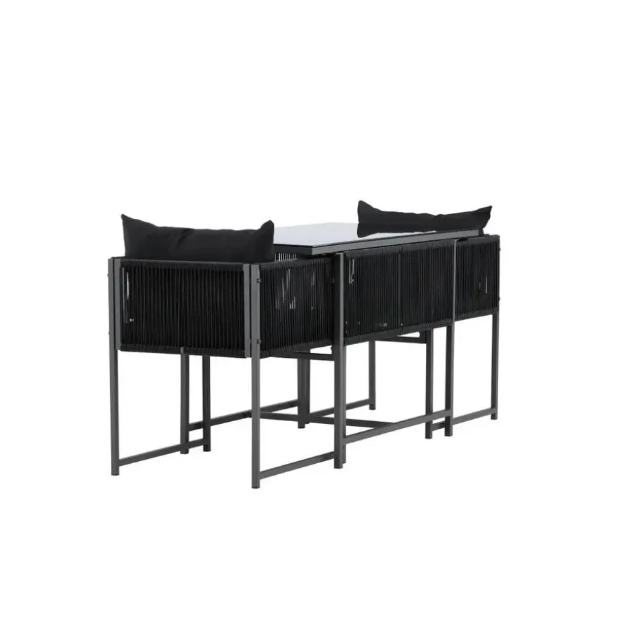 Voor iedereen die op zoek is naar een functionele en stijlvolle oplossing voor het balkon, biedt de Isabella balkonset – zwart een harmonieuze mix van design en gebruiksgemak. Creëer uw eigen gezellige buitenhoek en maak van elk moment een bijzonder moment met deze prachtige balkonset.