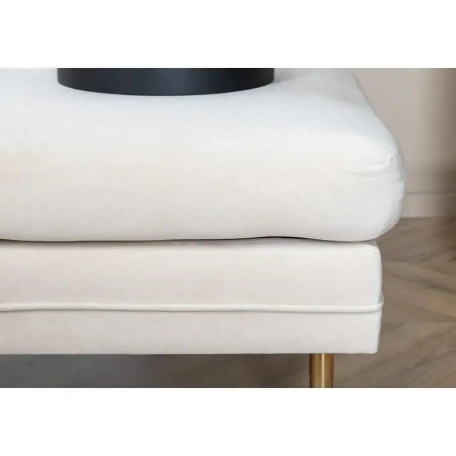 Onderhoudsadvies: Het fluweel heeft de neiging om drukplekken te krijgen wanneer de pool plat ligt. De afdrukken kunnen de stof er versleten uit laten zien, wat heel normaal is voor dit type materiaal. Afhankelijk van hoe het licht valt, kan de stof veranderen in de meest verschillende tinten. De Tess hocker is verkrijgbaar in de kleuren zwart, groen, beige, blauw en roze.