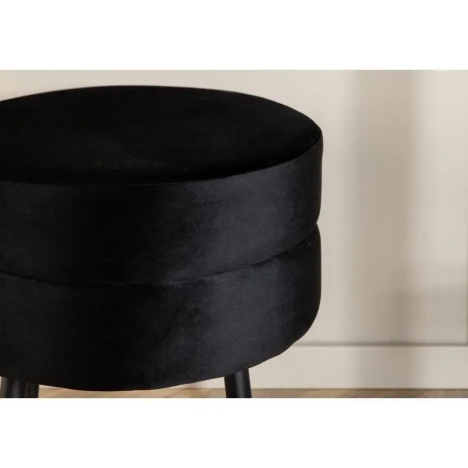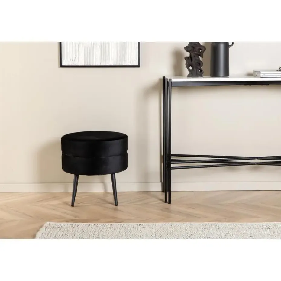Het stevige frame zorgt voor een duurzame en stabiele constructie, waardoor de hocker ideaal is voor zowel dagelijks gebruik als speciale gelegenheden. De elegante zwarte kleur voegt een vleugje verfijning toe aan uw interieur, terwijl het minimalistische ontwerp moeiteloos integreert met verschillende decorstijlen.
