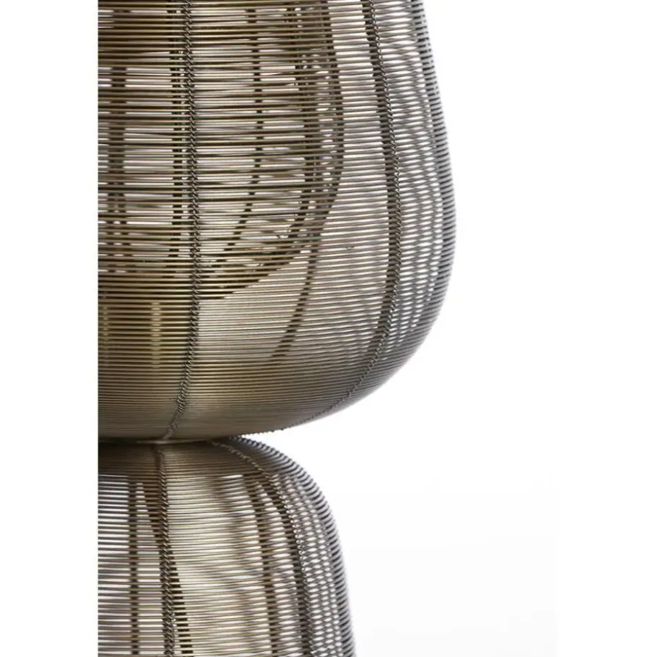 Verlicht uw ruimte met de Aboso tafellamp, met een geweven mand ontwerp van Ø24cm in brons metaal. De zachte verlichting voegt een sfeervolle touch toe, waardoor deze lamp een blikvanger is in uw interieur. Of u nu in bed leest of vrienden ontvangt in de woonkamer, brengt deze lamp charme en een zachte gloed in uw ruimte.