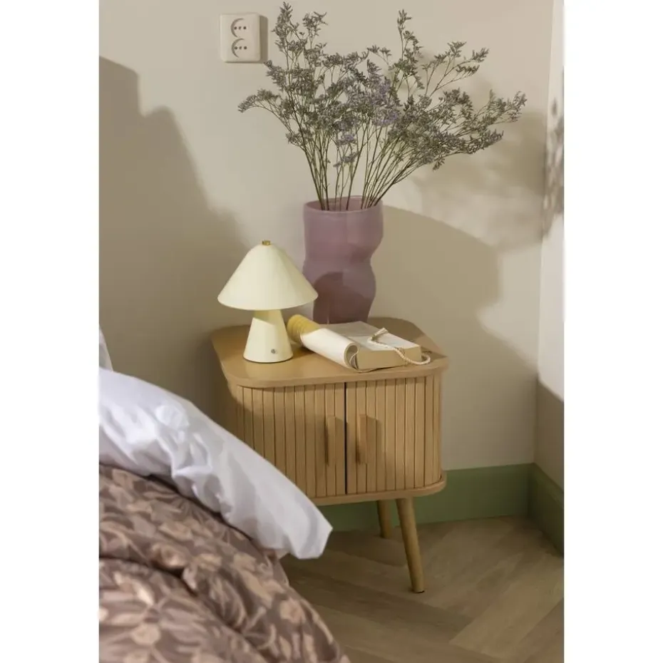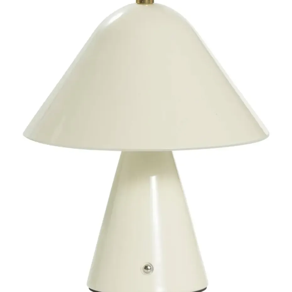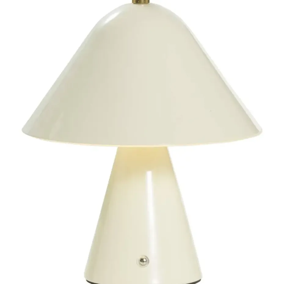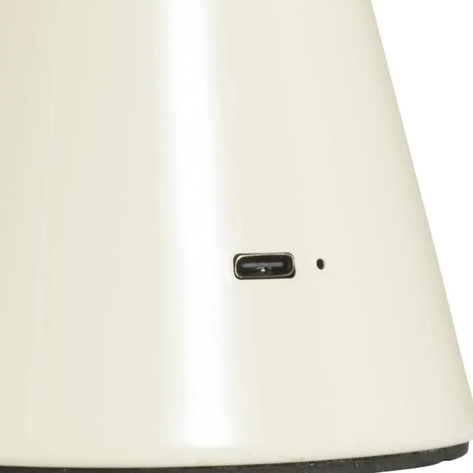 Tafellamp Nami is gemaakt van metaal in de kleur off-white. De lamp heeft een retro uitstraling met een moderne twist. Deze bureaulamp heeft een hoogte van 26,5 cm en een diameter van 19,5 cm. Middels een USB is de lamp zelfs oplaadbaar.