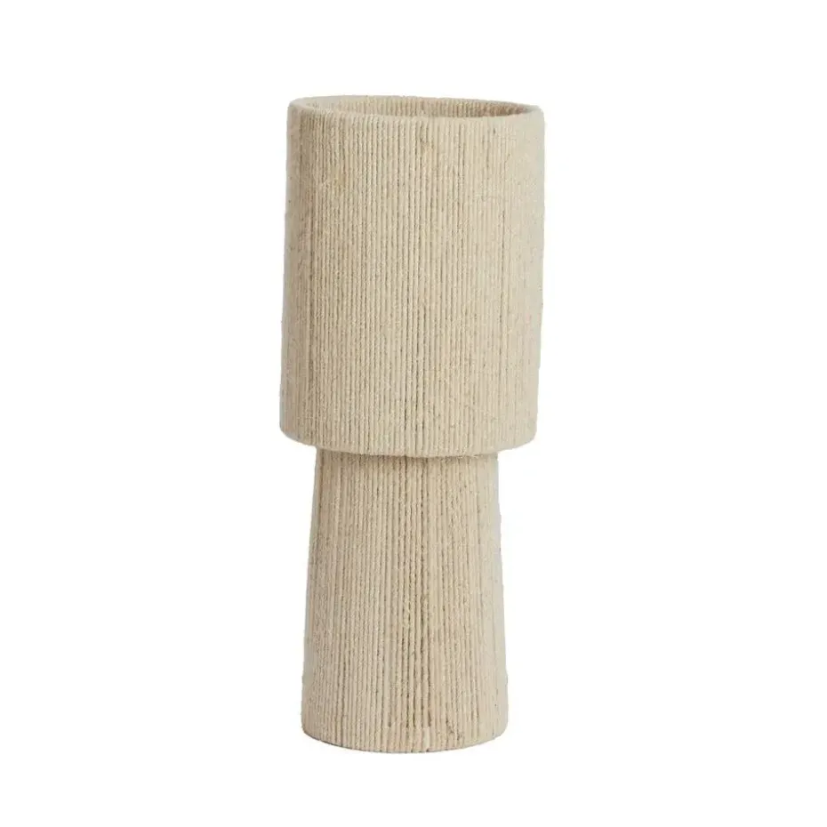Dompel uw bijzettafel onder in een boeiend samenspel van modern design en warmte met de Lavatera tafellamp. Dit unieke stuk heeft een opvallende afmeting van 21,5×21,5×54,5cm en een lampenkap gemaakt van jute touw, kunstig geweven rond een strak metalen frame. Het samenspel van materialen creëert een textuur contrast dat zowel interessant als modern is. Het rode touw voegt een vleugje warmte toe aan het algehele ontwerp en werpt een zachte en uitnodigende gloed over uw ruimte. Of u nu de voorkeur geeft aan een vleugje industriële chic of een unieke blikvanger waardeert, deze tafellamp is een stijlvolle en functionele toevoeging aan uw interieur.