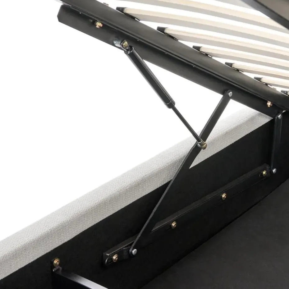 Belangrijkste eigenschappen: Schokabsorberende bedbodem voor goede ondersteuning, Stevig, duurzaam geïntegreerd frame, Minimalistisch, Scandinavische stijl, Past bij vele interieurstijlen, Hoogwaardige kwaliteit stoffering, Makkelijk te openen opbergvak door gasdrukveermechanisme